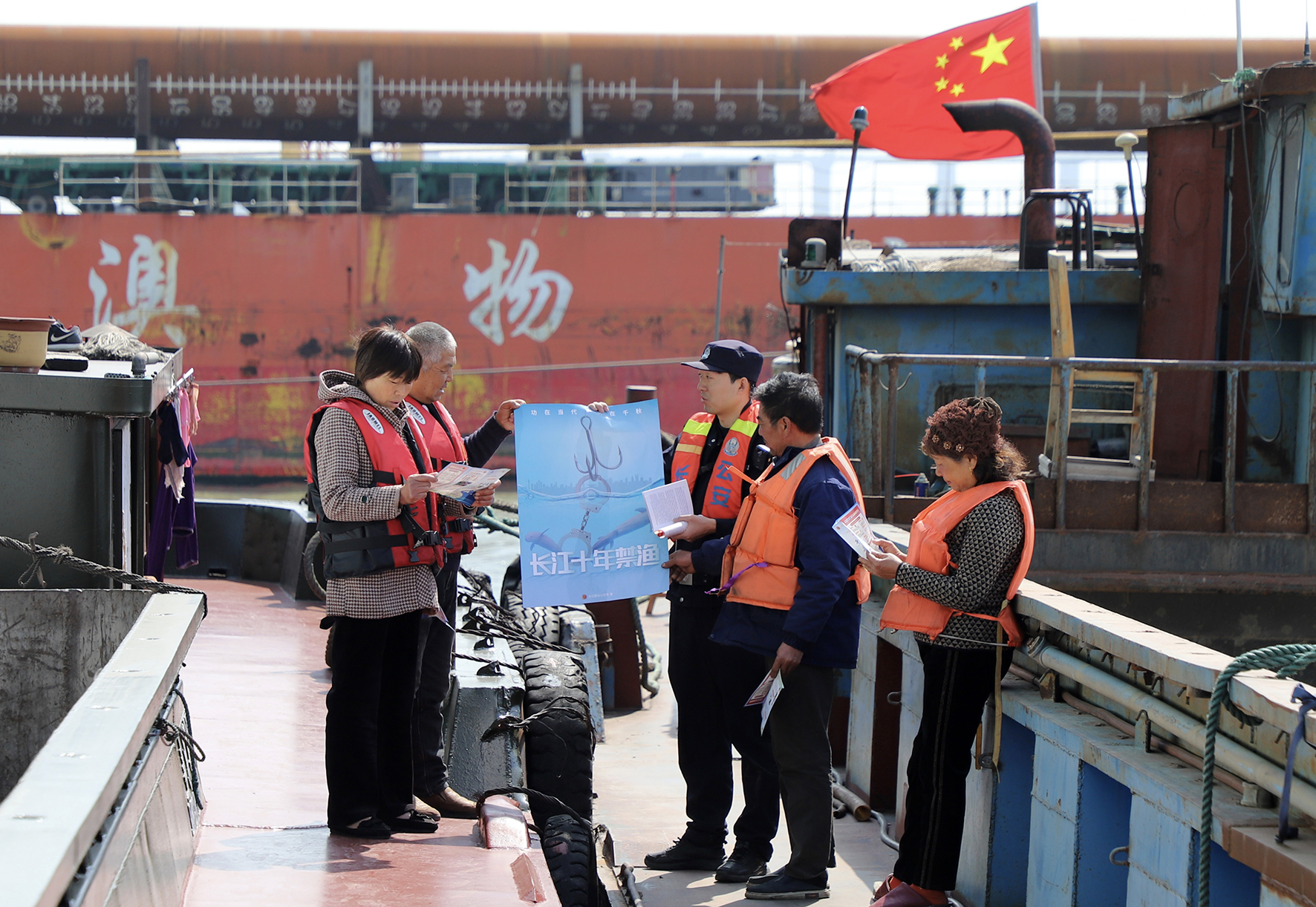 圖為民警來到長江刀鱭水產(chǎn)種質(zhì)資源保護(hù)區(qū),向船員開展普法教育宣傳。