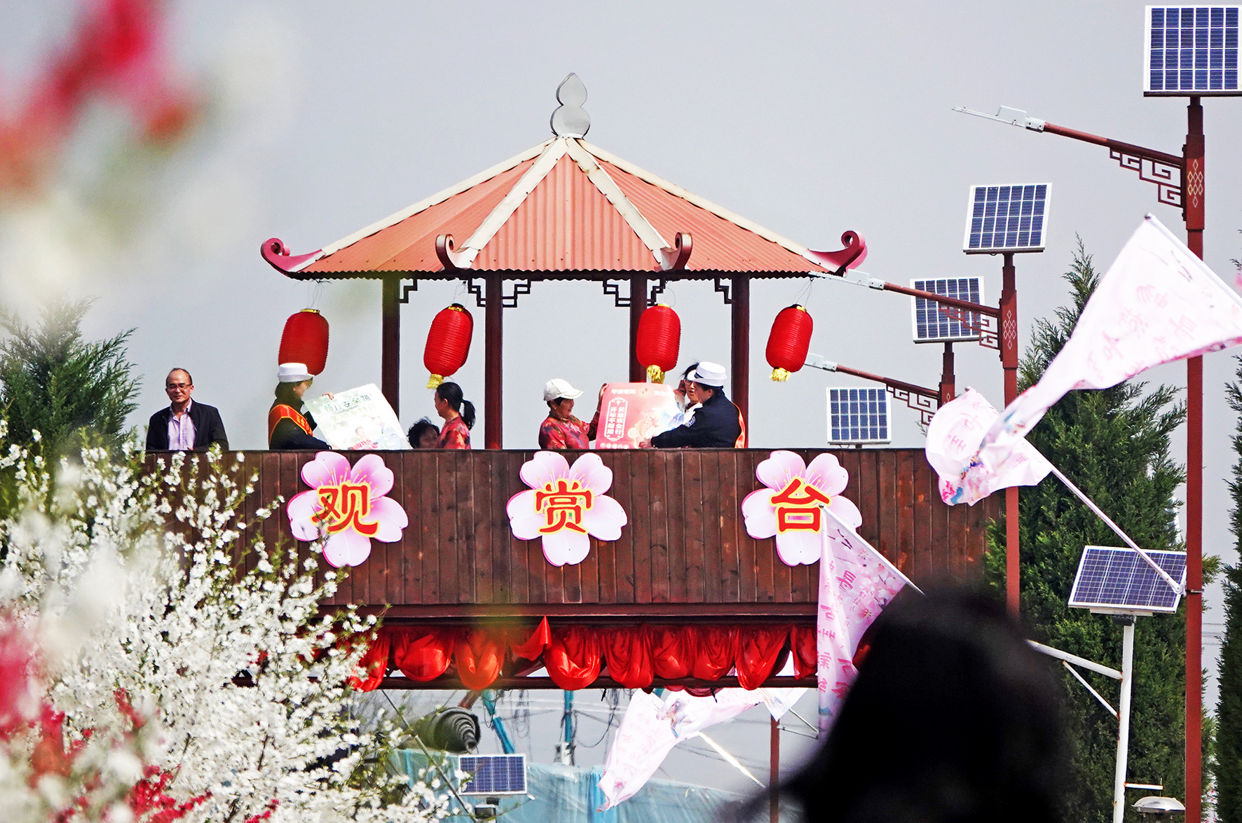 4月1日,山西省運(yùn)城市新絳縣公安交警大隊(duì)民輔警在新絳縣第十一屆桃花觀光交流會上向游客宣傳交通安全知識。