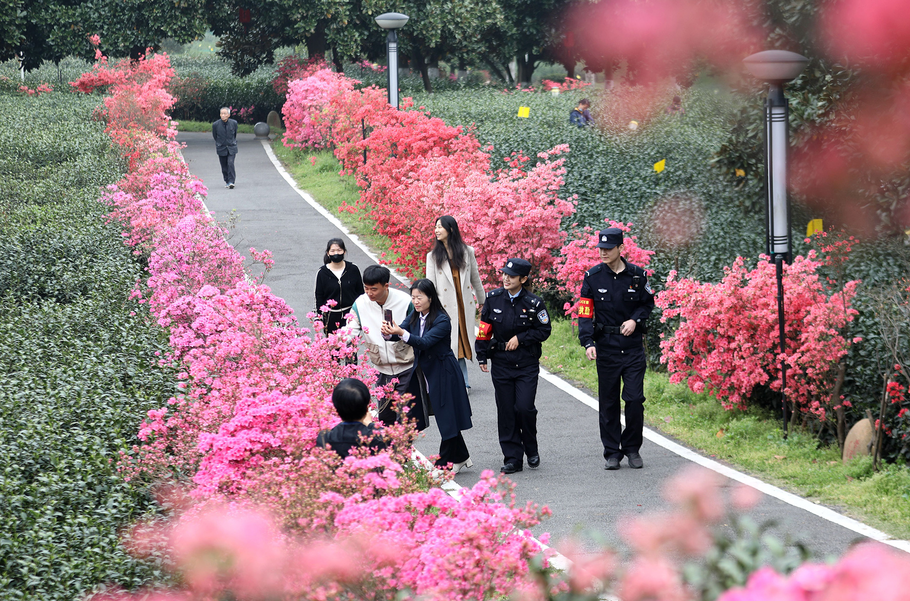 人間最美四月天,踏春賞花正當(dāng)時。4月7日,安徽省舒城縣公安局舒茶派出所組織警力在轄區(qū)九一六茶園巡邏守護,為游客提供解答咨詢、求助報警、安全提示、游園引導(dǎo)等服務(wù)。