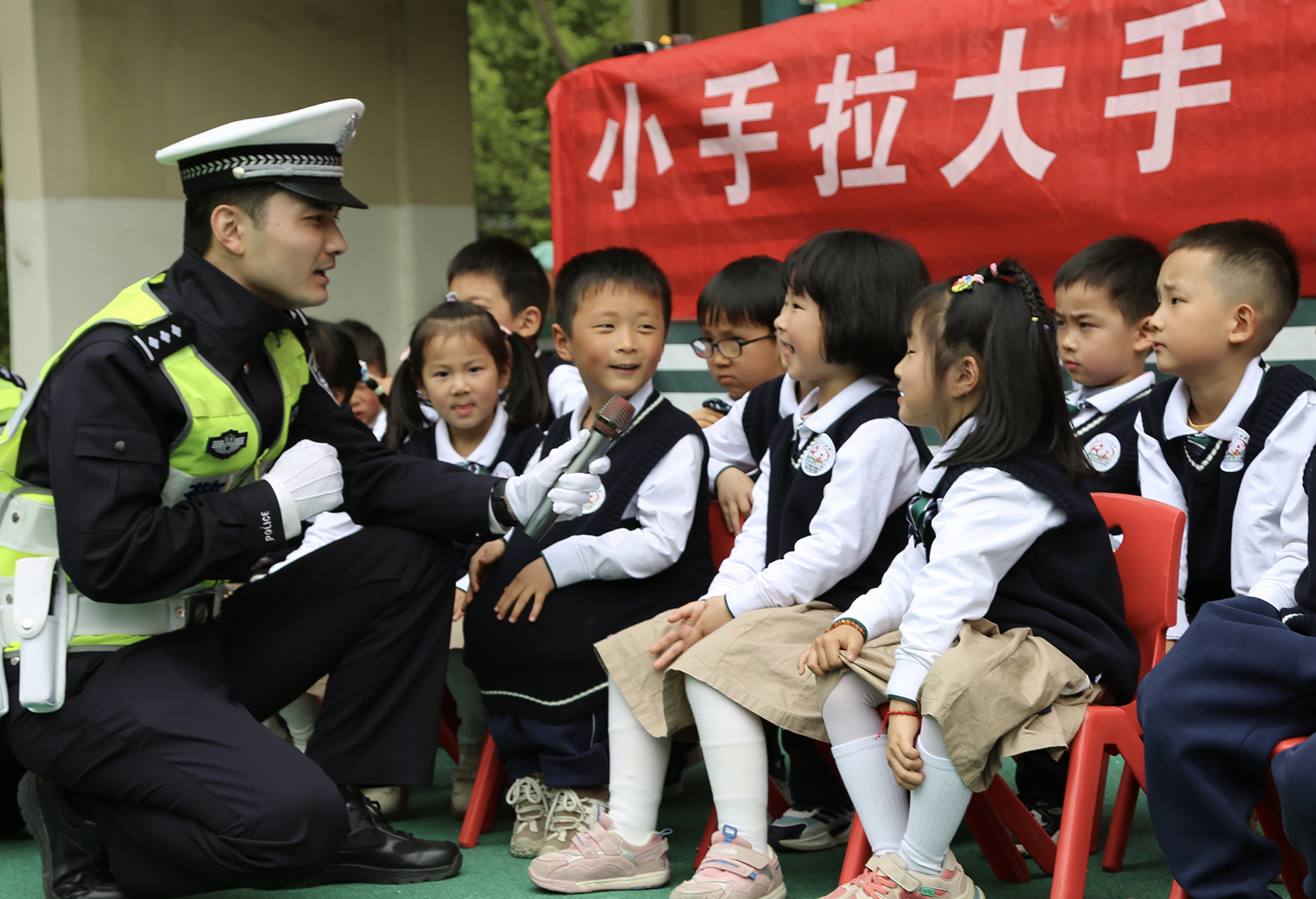 4月11日,在第九個(gè)全民國家安全教育日前夕,安徽省蕪湖市公安局交警支隊(duì)鏡湖大隊(duì)民警走進(jìn)環(huán)城南路幼兒園,開展“國家安全宣傳教育”進(jìn)校園活動(dòng)。