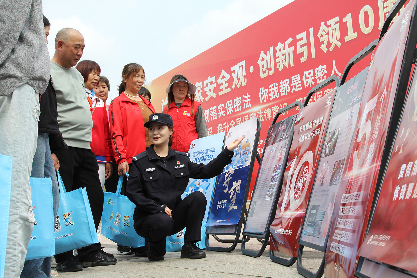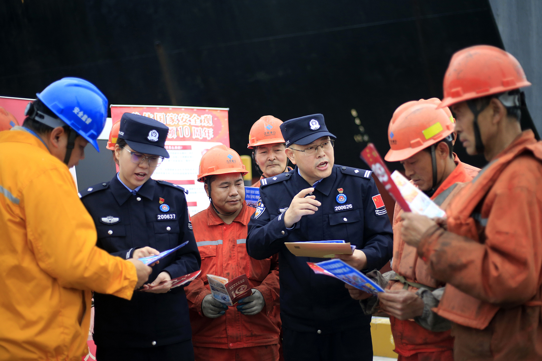 4月12日,在第九個(gè)全民國家安全教育日前夕,江蘇南京港出入境邊防檢查站組織民警深入口岸一線開展“總體國家安全觀 創(chuàng)新引領(lǐng)10周年”為主題的宣傳活動(dòng)。
