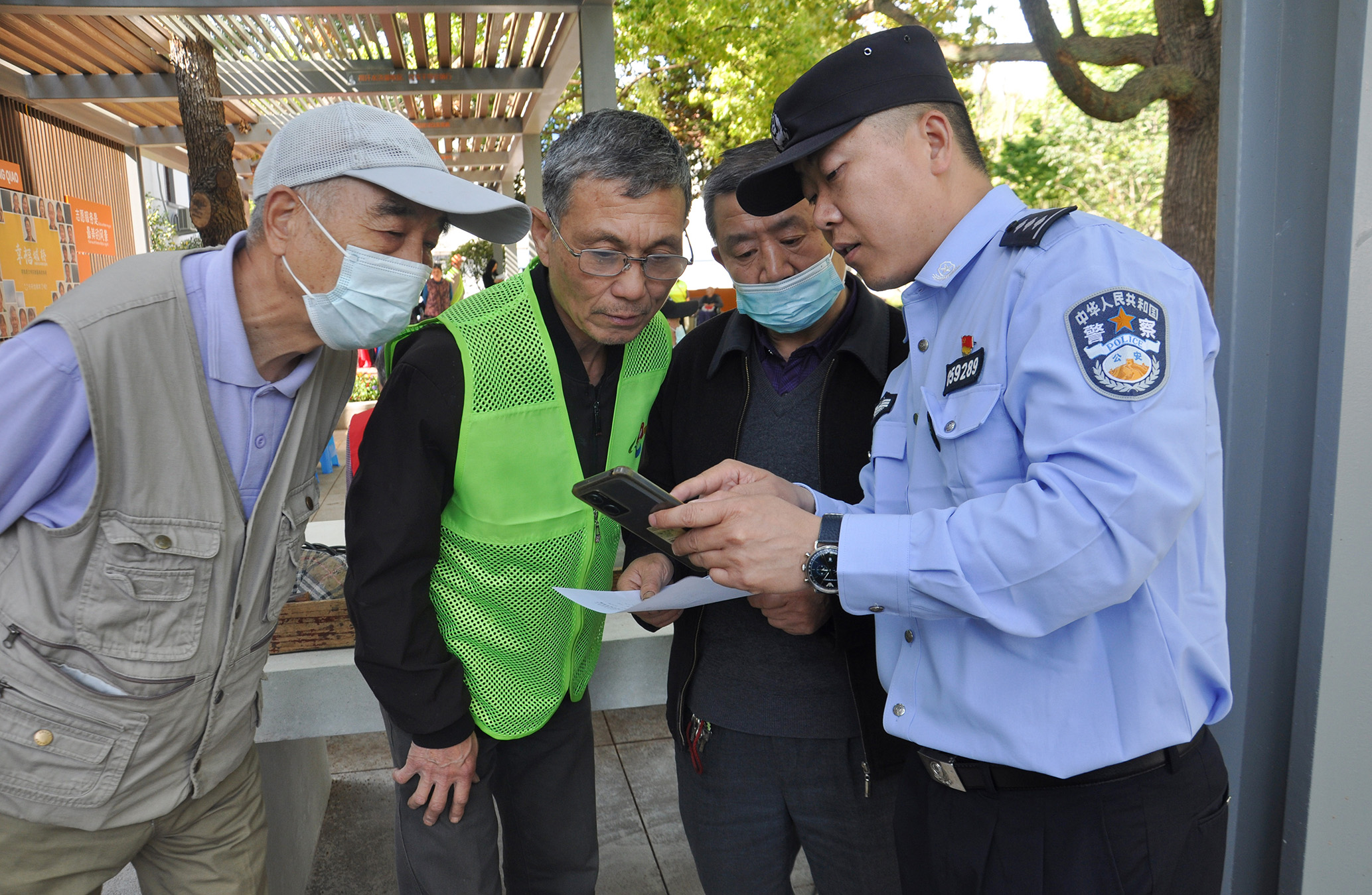 5月7日,上海市公安局崇明分局城橋派出所組織民警來到社區(qū)“口袋”公園,向公園內(nèi)休閑的老年群眾提供法律咨詢服務(wù)和電信網(wǎng)絡(luò)詐騙防范宣傳,提醒他們要守好自己的“錢袋子”。
