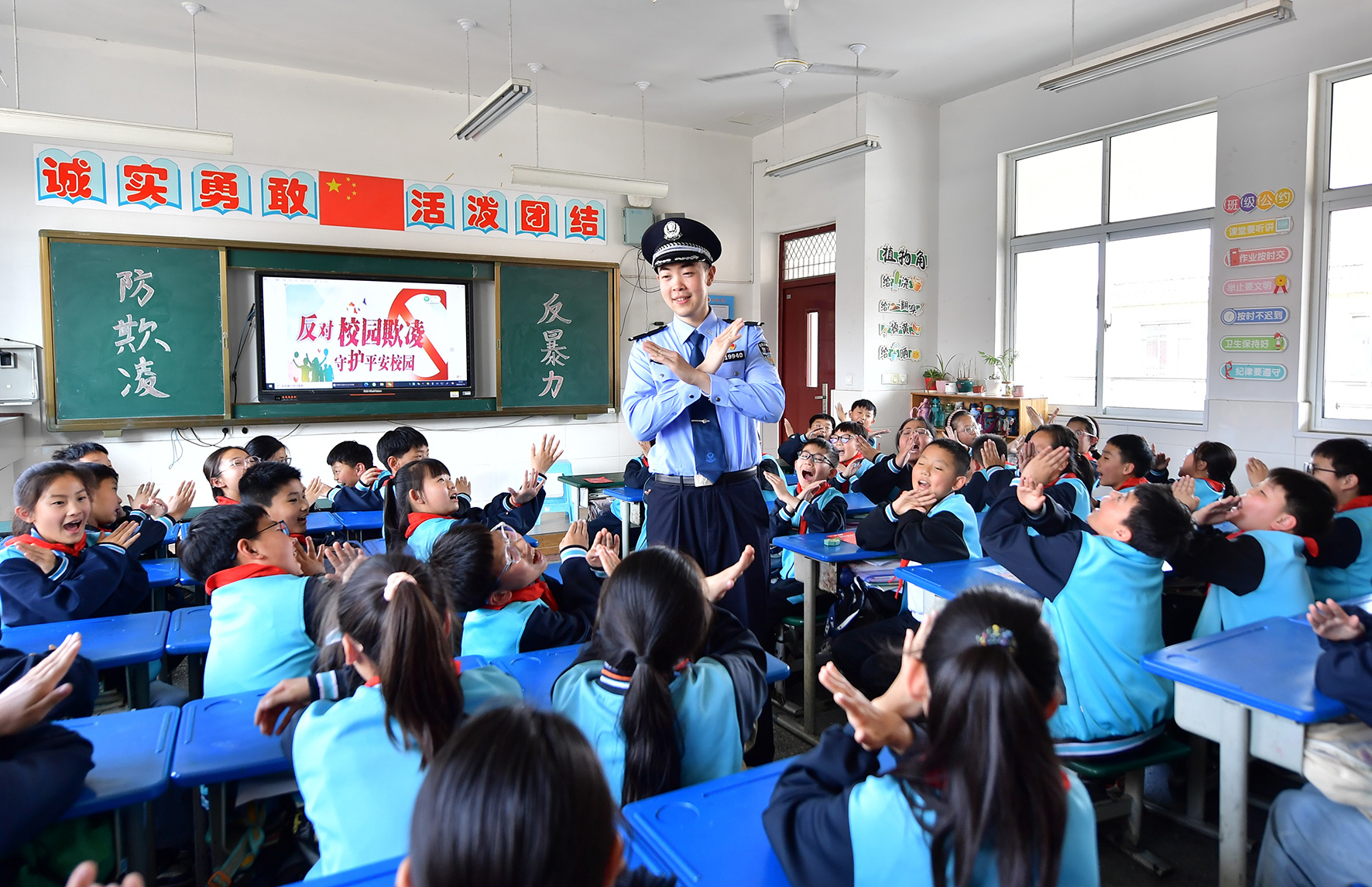 5月10日,山東省棗莊市臺(tái)兒莊區(qū)明遠(yuǎn)實(shí)驗(yàn)小學(xué)法治副校長(zhǎng)、棗莊市公安局臺(tái)兒莊分局臺(tái)北路派出所民警走進(jìn)校園開展反欺凌宣傳活動(dòng)。