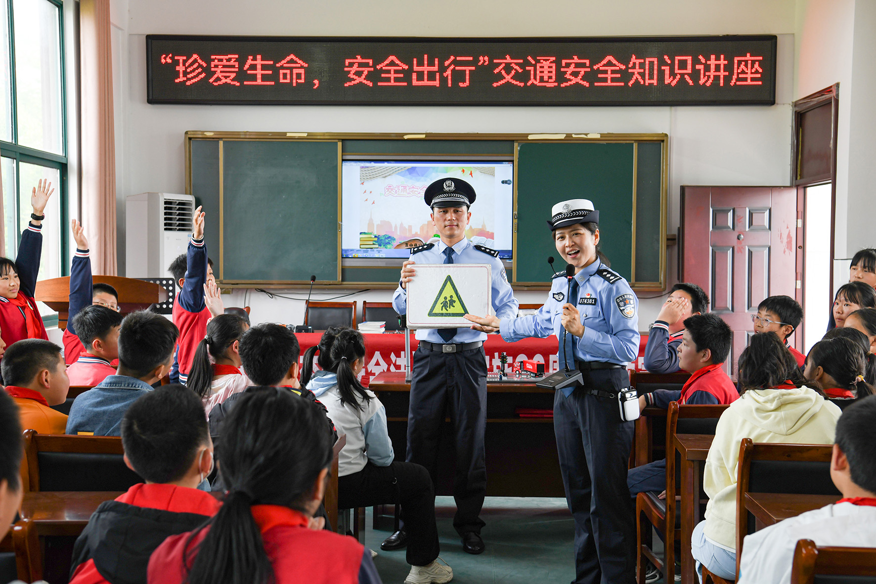 5月15日,安徽省馬鞍山市含山縣公安局交管大隊組織民警走進(jìn)陶廠中心小學(xué),開展以“小手拉大手 安全一起走”為主題的交通安全宣傳活動。