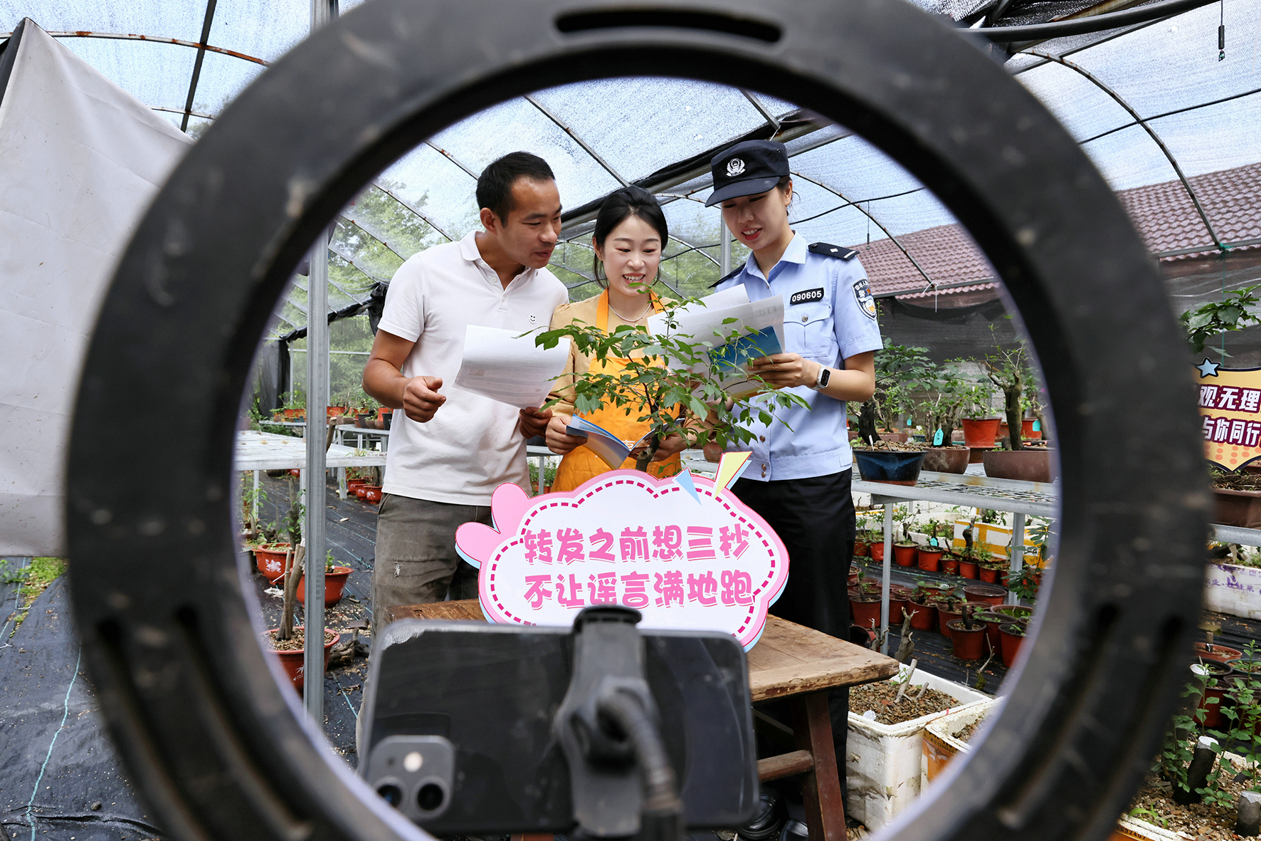 5月23日,安徽省寧國市網(wǎng)安大隊與梅林派出所民警在梅林鎮(zhèn)“誠藝園藝”企業(yè)產(chǎn)品直播間,向企業(yè)從事直播的人員開展打擊整治網(wǎng)絡謠言宣傳。