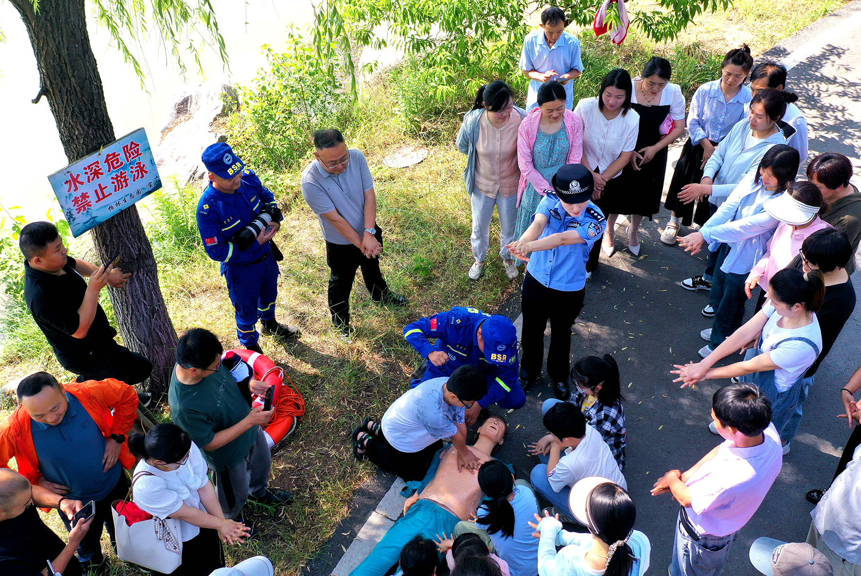 5月23日,安徽省舒城縣公安局柏林派出所聯(lián)合藍(lán)天救援隊(duì)來(lái)到轄區(qū)柏林生態(tài)園,向家住附近的未成年人及群眾宣傳防溺水知識(shí)。