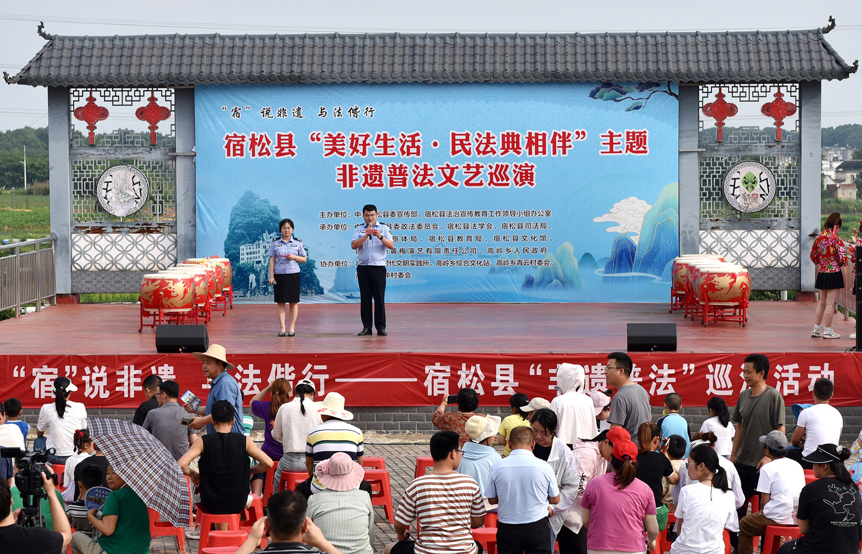 5月26日,安徽省宿松縣司法局“非遺普法”文藝演出隊(duì)走進(jìn)高嶺鄉(xiāng)青云村開展民法典普法宣傳。通過群眾喜聞樂見的文南詞、大鼓書、小品、歌曲聯(lián)唱、有獎(jiǎng)問答等形式宣講法律知識(shí),增強(qiáng)村民“學(xué)法、懂法、守法、用法”意識(shí)。