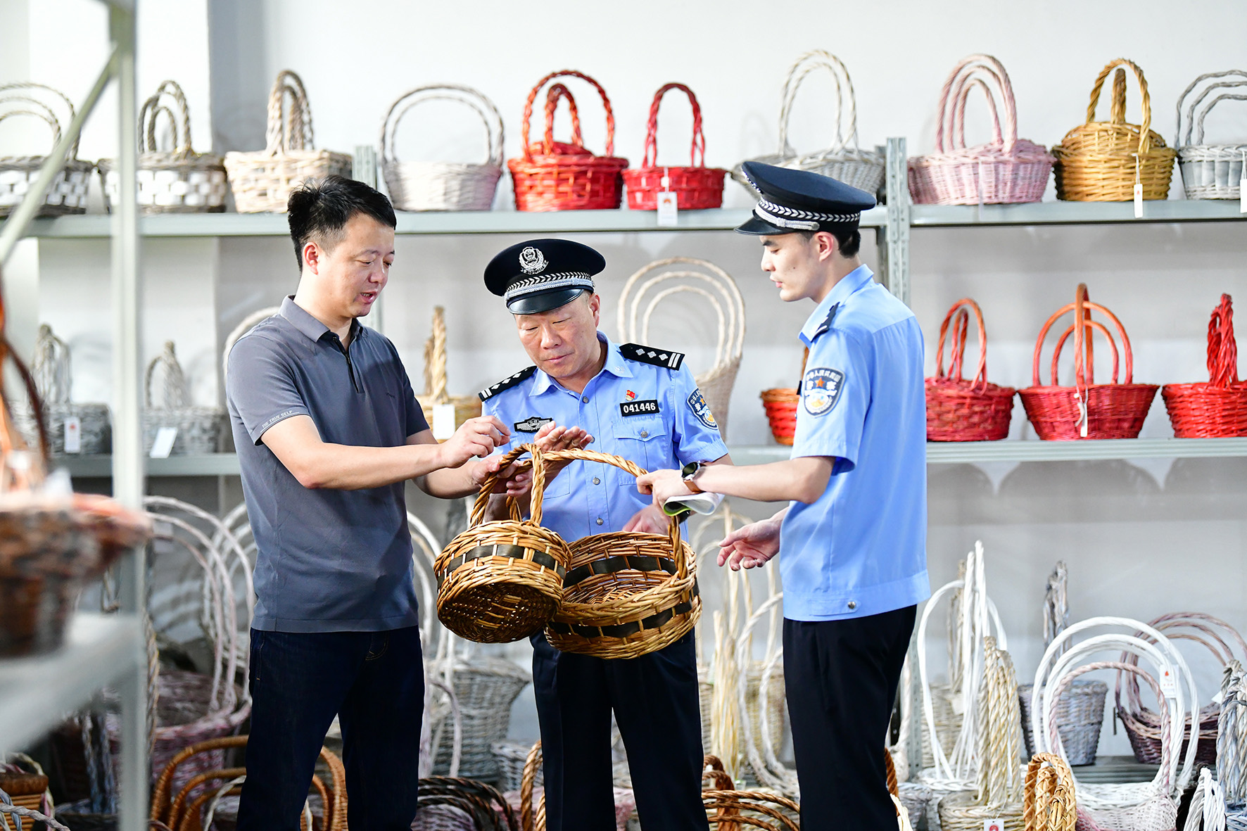 5月27日,安徽省阜南縣公安局經偵民警在縣經濟開發(fā)區(qū)一家柳編企業(yè)走訪經濟發(fā)展情況,開展防范非法集資、養(yǎng)老詐騙、高利轉貸、合同詐騙等宣傳。