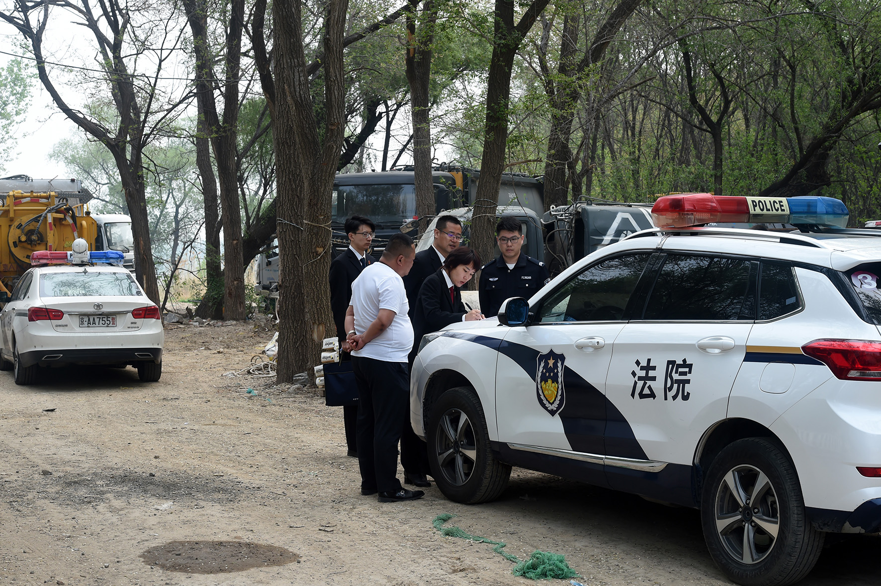 4月22日,北京市第三中級人民法院、河北省隆化縣人民法院的執(zhí)行法官與當事人在北京市昌平區(qū)大湯山村一處停車場內,現(xiàn)場對三輛涉案扣押車輛辦理轉移交接手續(xù)。