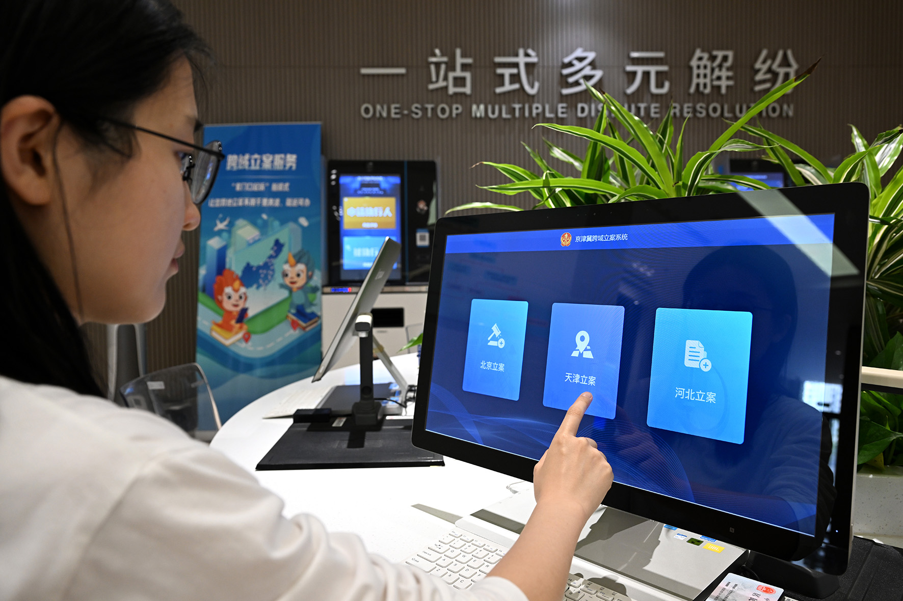 4月22日,北京市第三中級人民法院立案大廳,一位當事人正在利用“京津冀跨域立案”自助系統(tǒng)進行網(wǎng)上立案。2019年8月,京津冀三地法院率先在全國實現(xiàn)“跨域立案”全覆蓋。