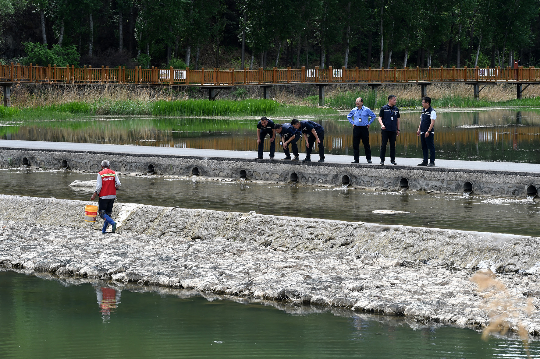 5月16日,北京市水務執(zhí)法總隊密云分隊與河北省承德市灤平縣水務局執(zhí)法人員在密云區(qū)古北口鎮(zhèn)河西村了解潮河兩岸垃圾治理情況。