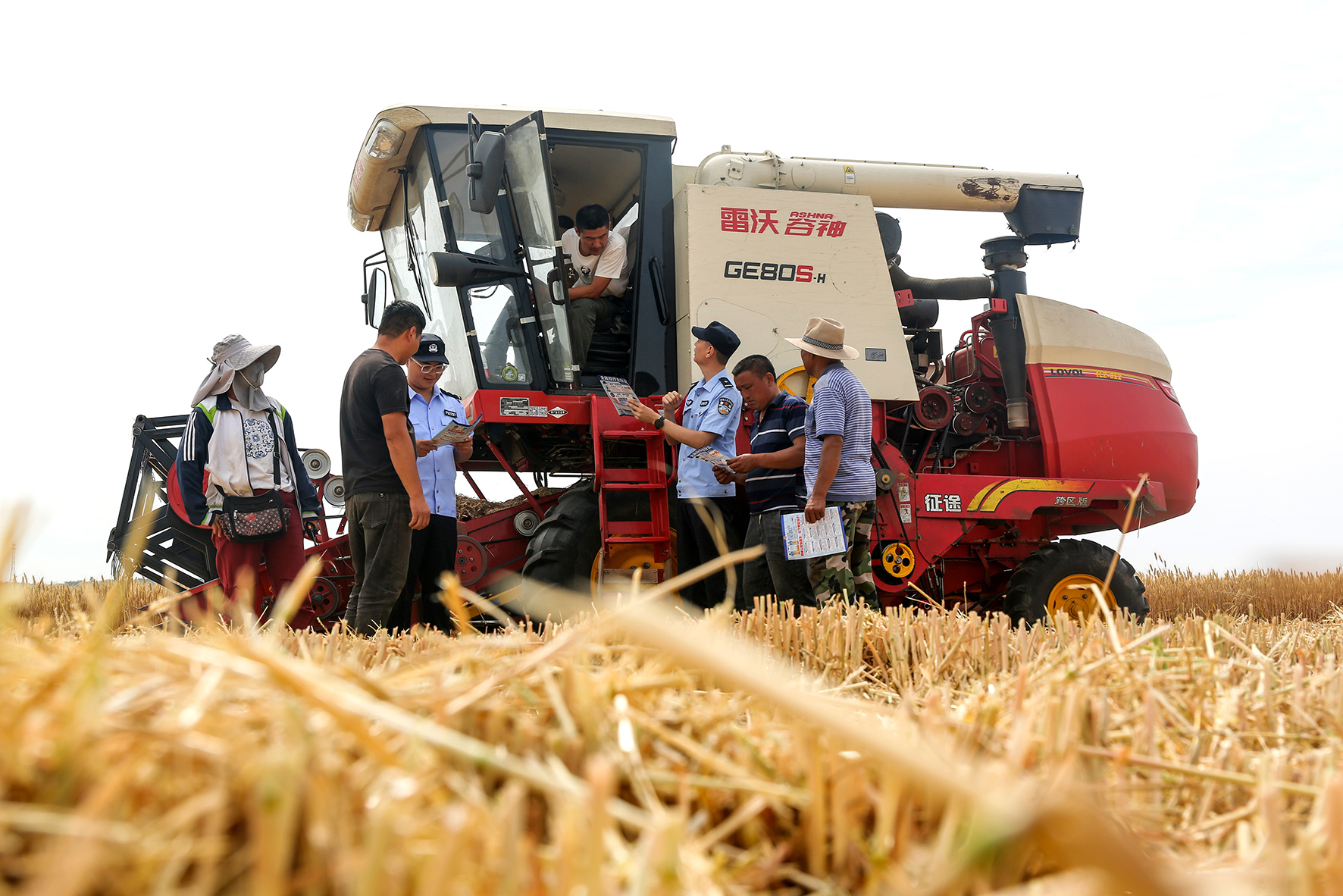 6月2日,山東省臨沂市郯城縣公安局泉源派出所民輔警走進(jìn)田間地頭宣講“三夏”麥?zhǔn)丈a(chǎn)安全常識(shí)。