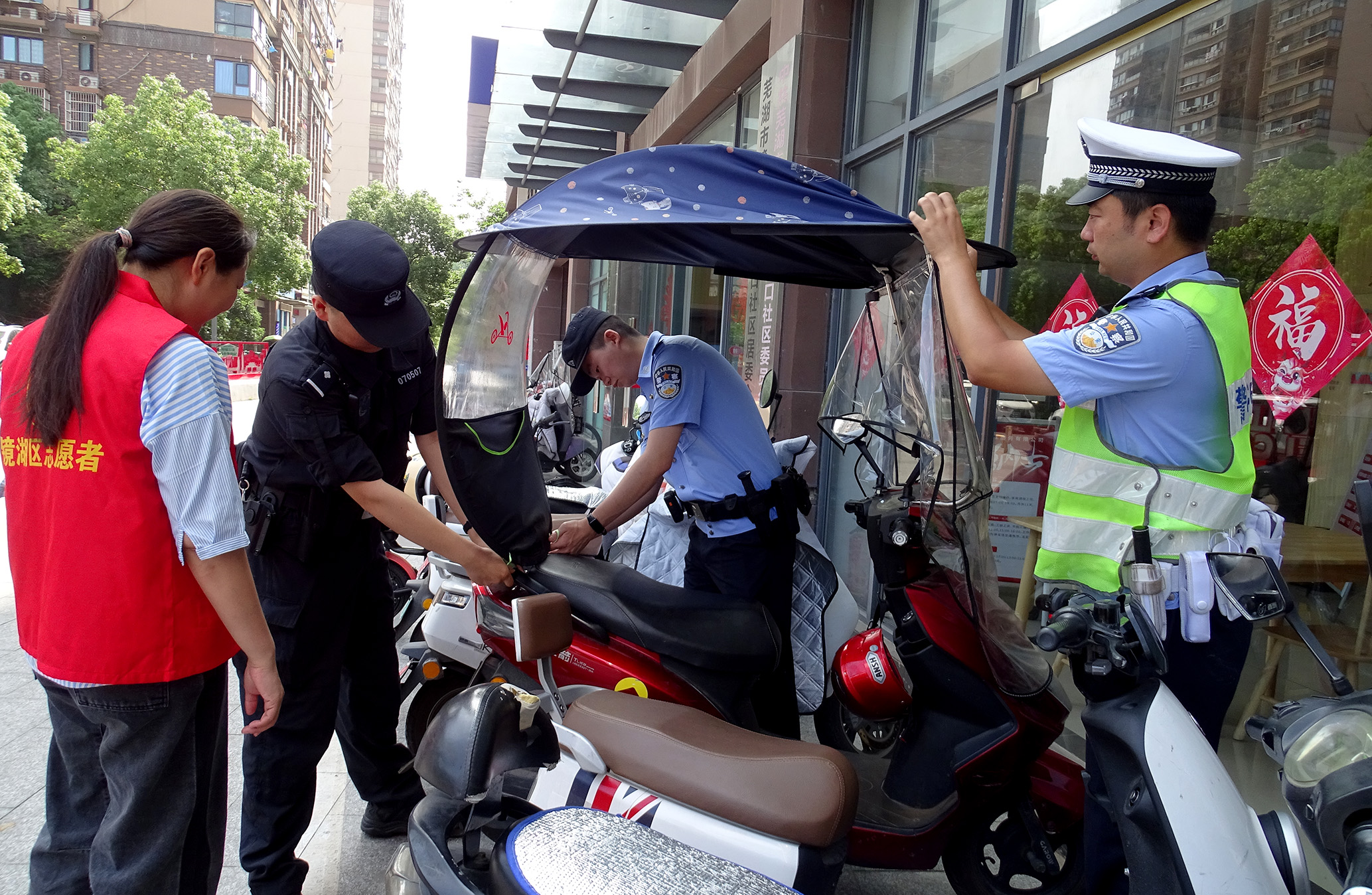 6月12日,安徽省蕪湖市公安局交警支隊(duì)鏡湖大隊(duì)、鏡湖公安分局特巡警大隊(duì)聯(lián)合北門口社區(qū)開展電動(dòng)車管理“掃樓”專項(xiàng)行動(dòng),嚴(yán)查電動(dòng)車非法加裝遮陽篷、駕乘人員不戴頭盔、不規(guī)范停車等交通違法行為。