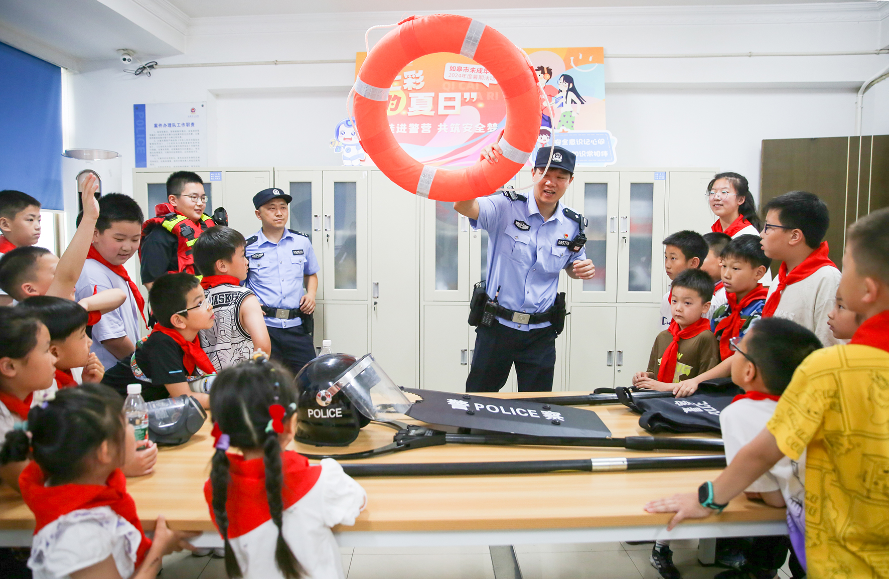 7月9日,江蘇省如皋市如城街道新時代文明實踐所聯(lián)合如皋市公安局,組織20余名學生來到如城中心派出所,開展“萌娃進警營 暑期別樣‘警’彩”研學活動。