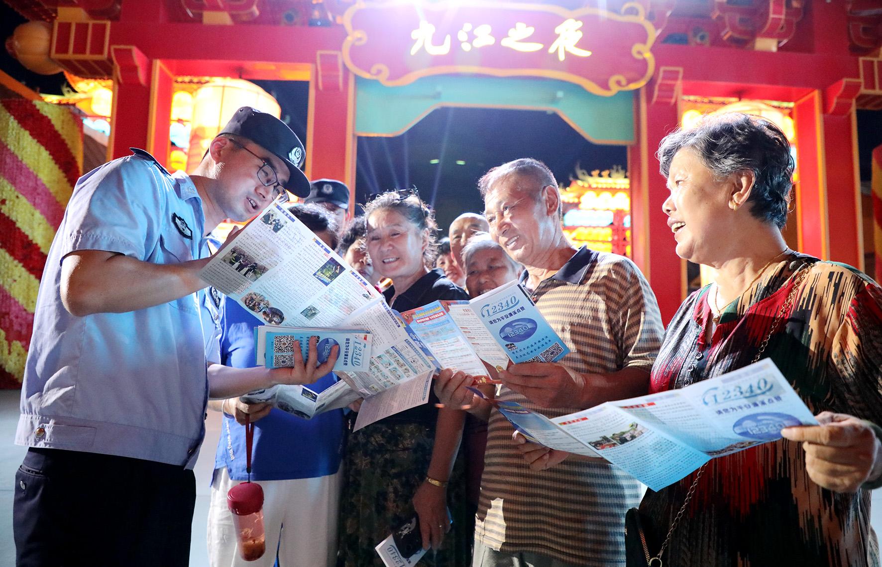 8月4日,江西省九江市公安局濂溪分局結(jié)合夏季治安打擊整治行動,組織民警輔警走進村莊社區(qū)、文旅休閑街區(qū)開展“平安夏夜 共同守護”主題安全知識宣傳活動,把安全防范知識送到群眾身邊。