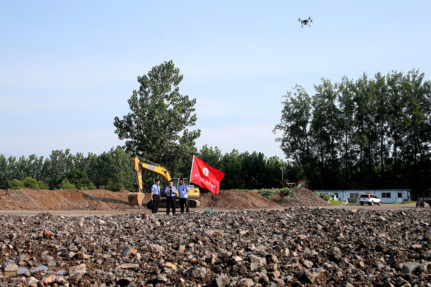 圖為8月7日,“檢源行”聯(lián)合辦案團隊在一起非法占用農用地案件現場開展勘查取證。