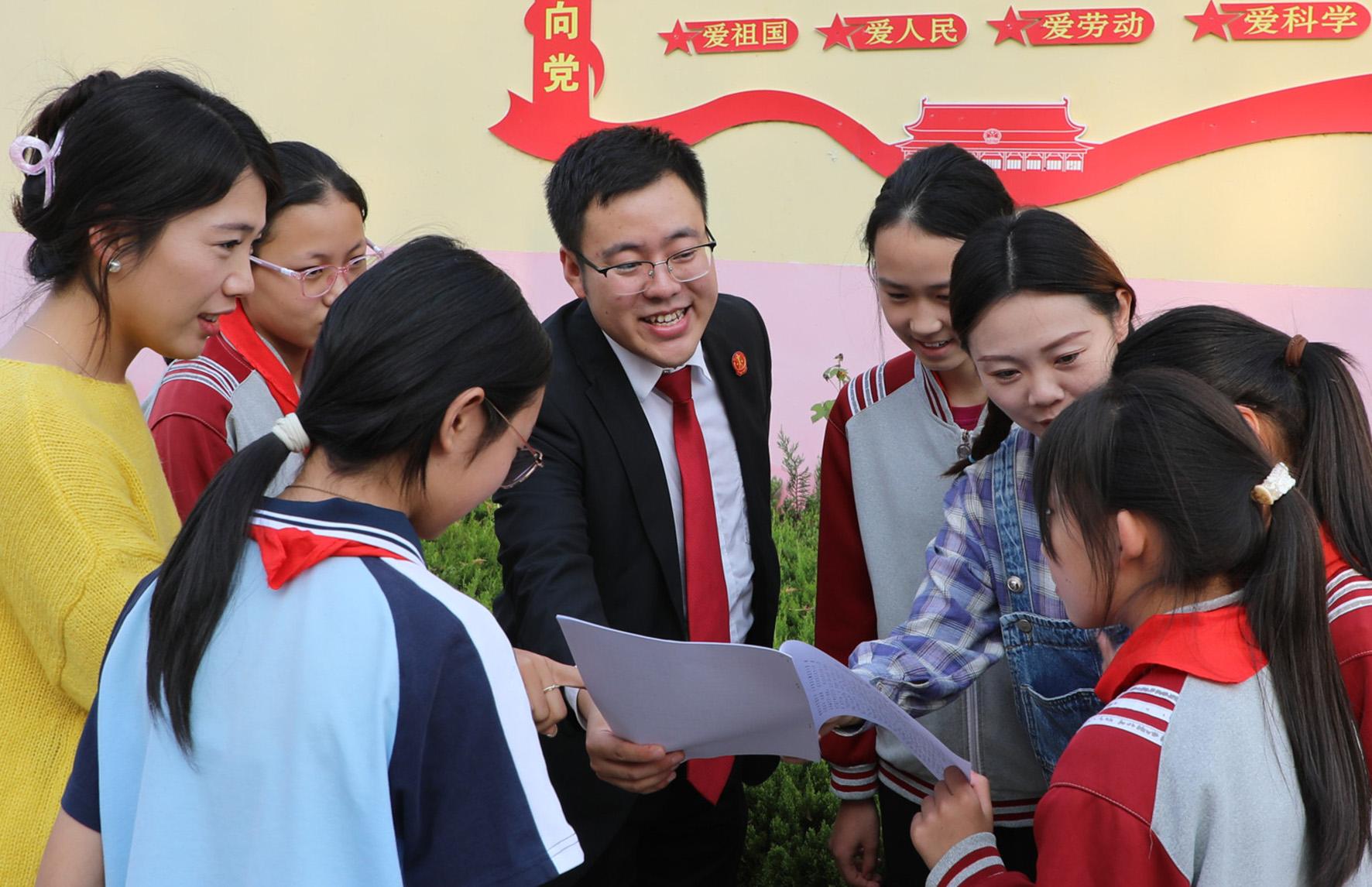 圖為10月9日,道口人民法庭干警給同學們答疑解惑。