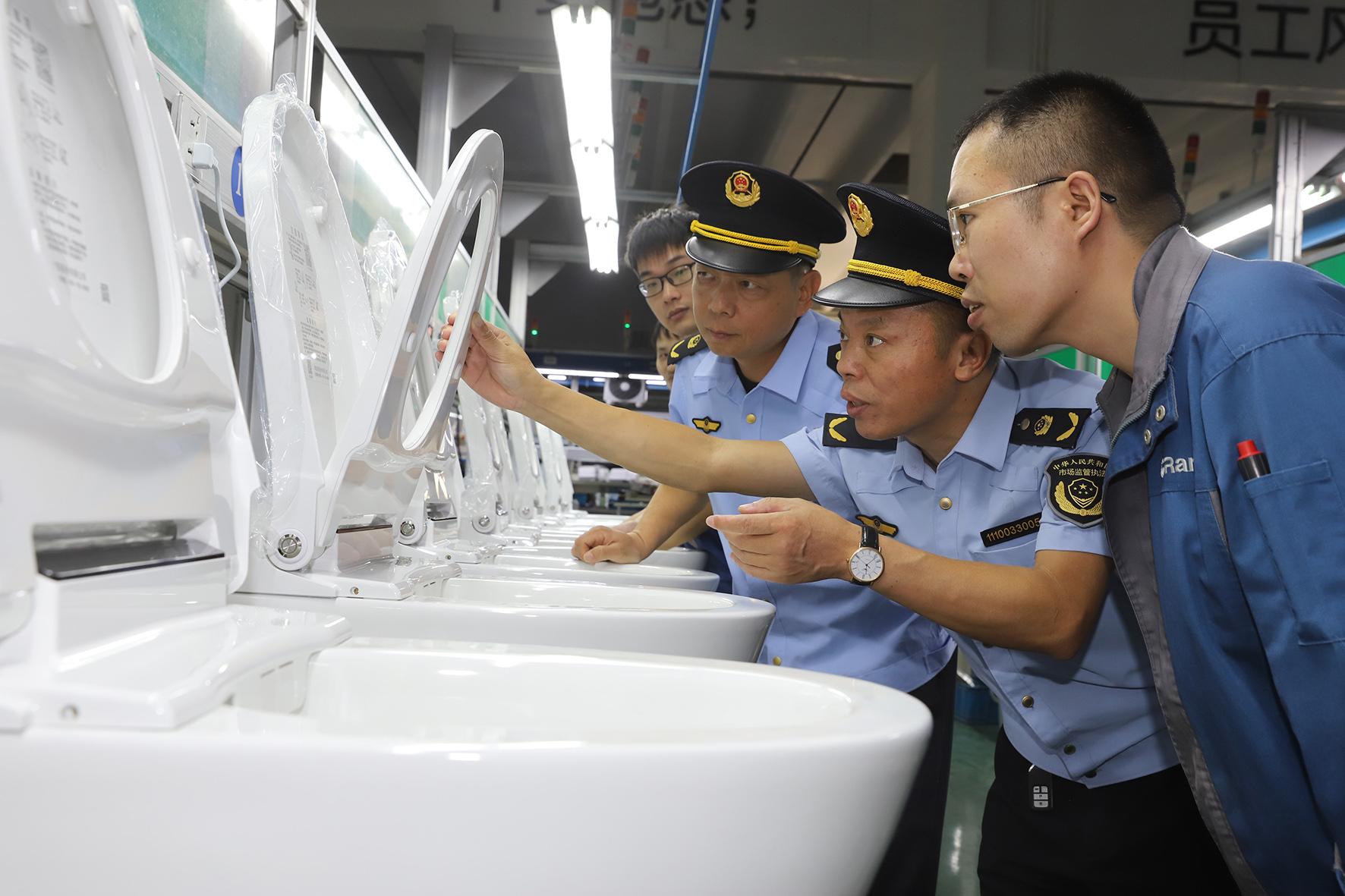 10月23日,浙江省臺州市路橋區(qū)橫街鎮(zhèn)市場監(jiān)督管理所執(zhí)法人員在轄區(qū)一家衛(wèi)浴企業(yè)走訪,并監(jiān)督企業(yè)嚴(yán)把產(chǎn)品質(zhì)量關(guān)。
