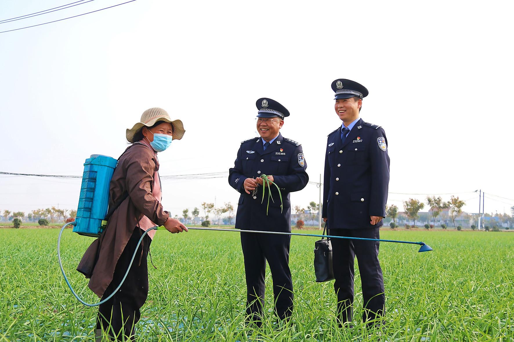 圖二:民警走進(jìn)田間地頭與群眾交流。