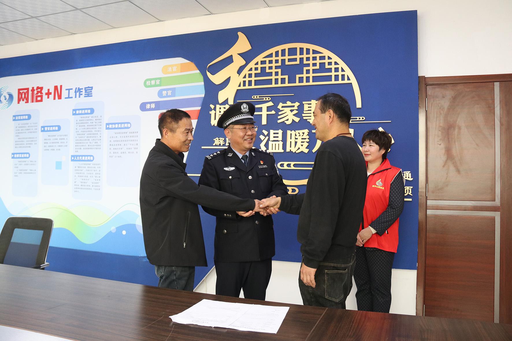 圖三:11月12日,民警調(diào)解一起糾紛,雙方握手言和。