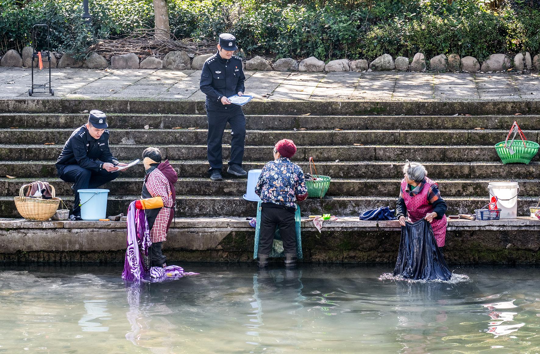圖為12月16日,民輔警向群眾進(jìn)行反詐、生態(tài)安全等宣傳。