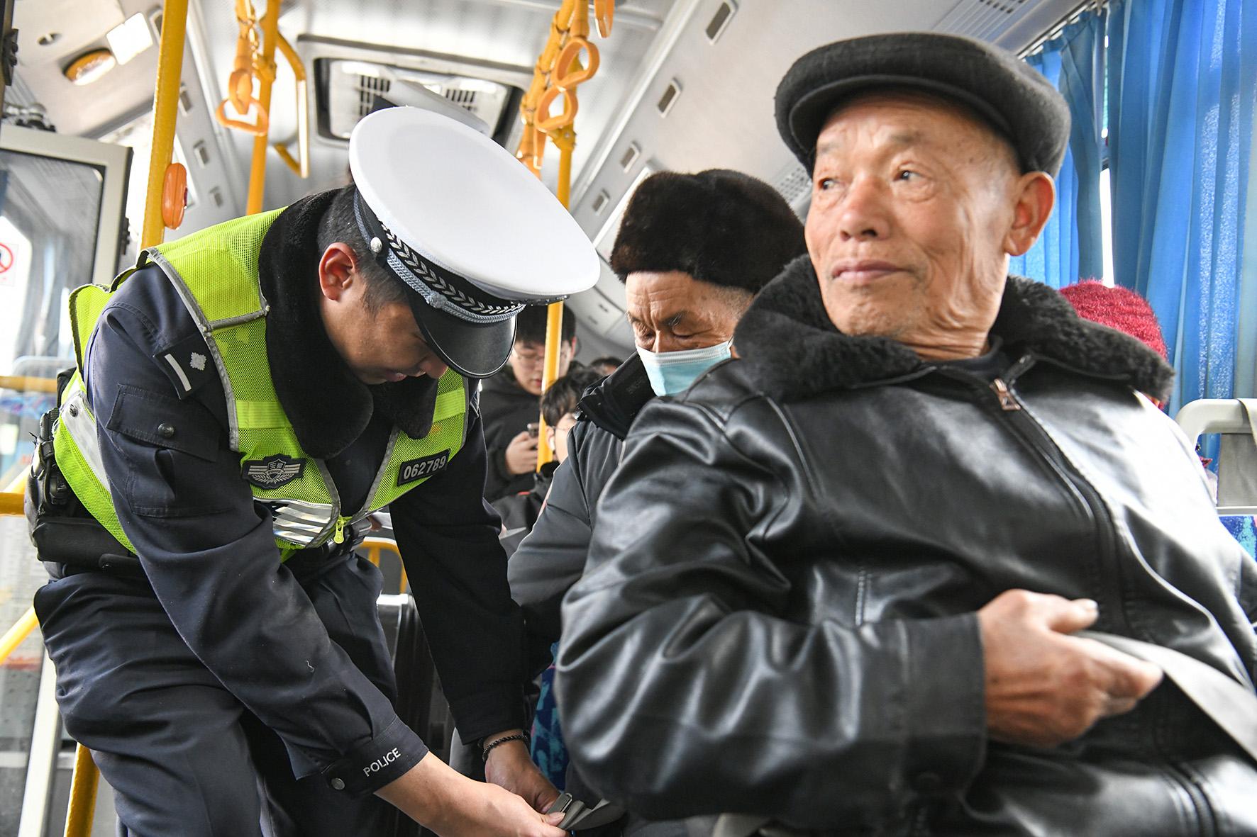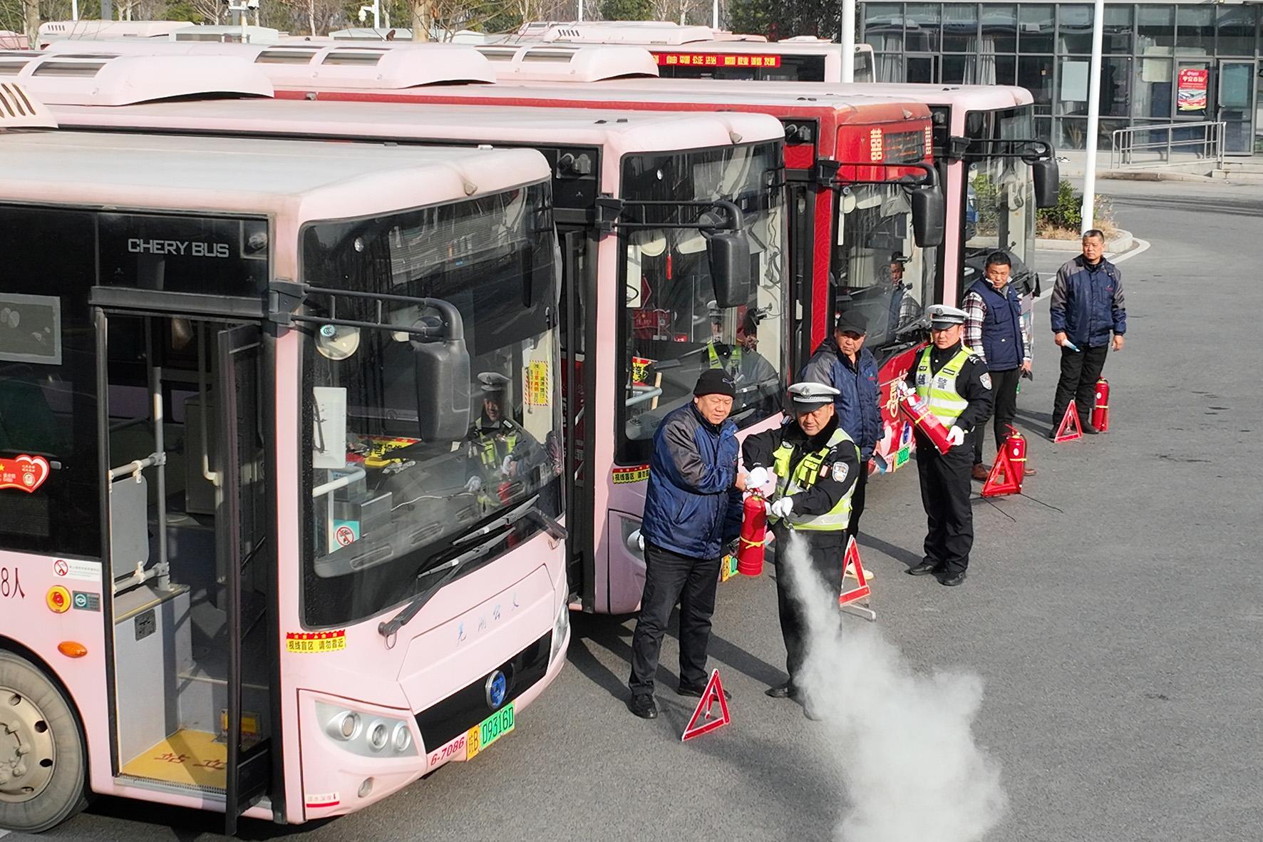 1月14日,春運(yùn)首日。安徽省碭山縣公安局交警大隊(duì)聯(lián)合交運(yùn)局等部門(mén)來(lái)到碭山客運(yùn)總站進(jìn)行安全檢查。