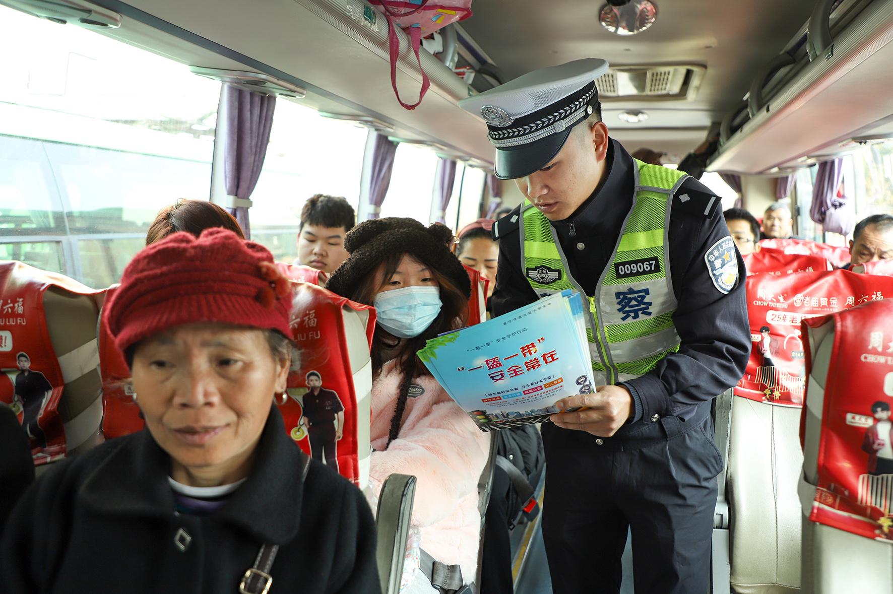 1月14日,貴州省黔東南苗族侗族自治州丹寨縣公安局交警大隊(duì)民警深入轄區(qū)客運(yùn)場(chǎng)站,向旅客開(kāi)展道路交通安全宣傳。