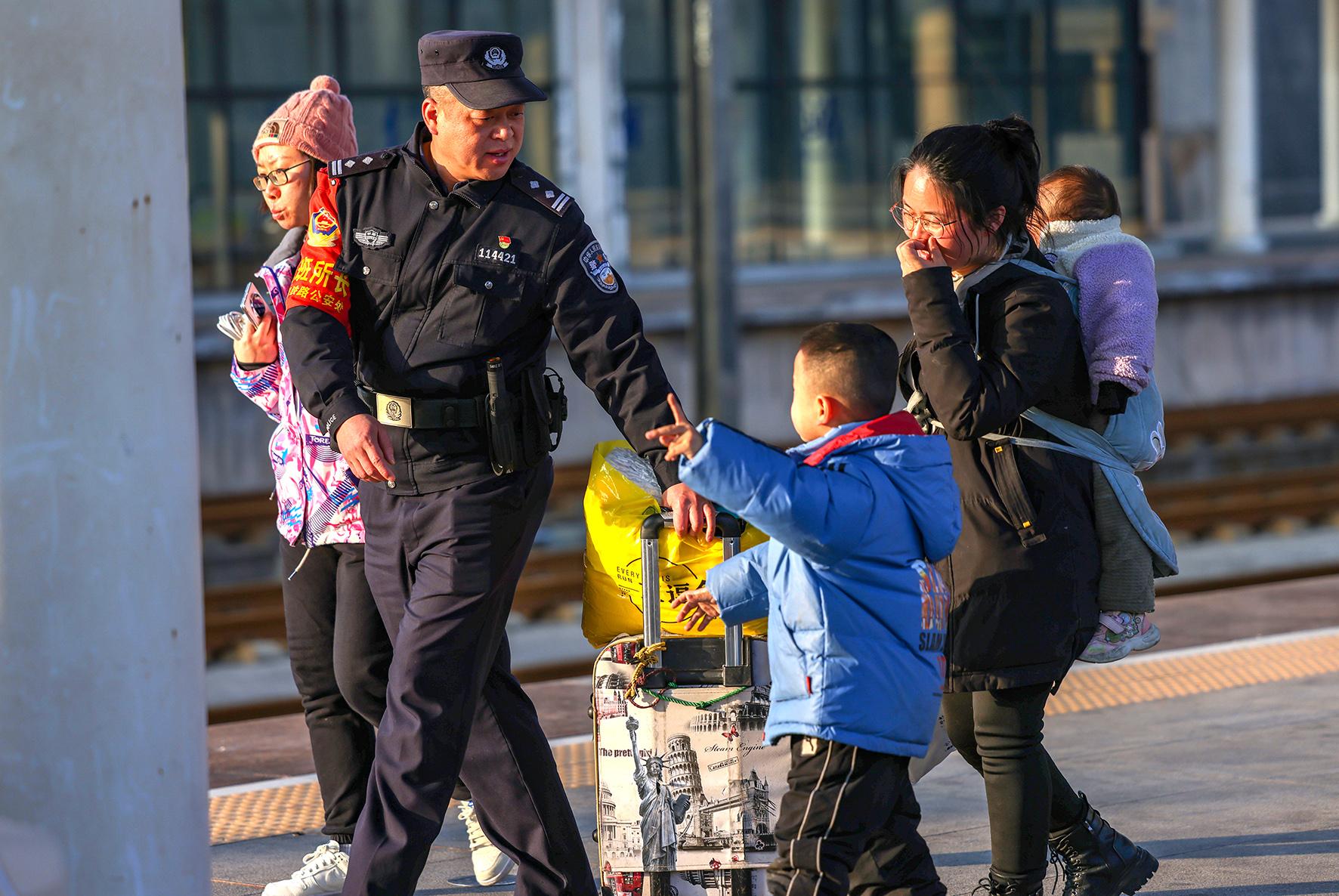 2月4日,春節(jié)假期最后一天。石家莊站派出所優(yōu)化警力配置,增加巡邏頻次,傾力服務旅客出行。