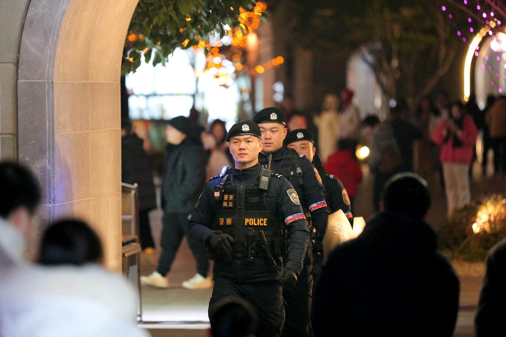 2月1日,四川省綿陽市公安局特巡警支隊機動二大隊民警在人民公園巡邏。
