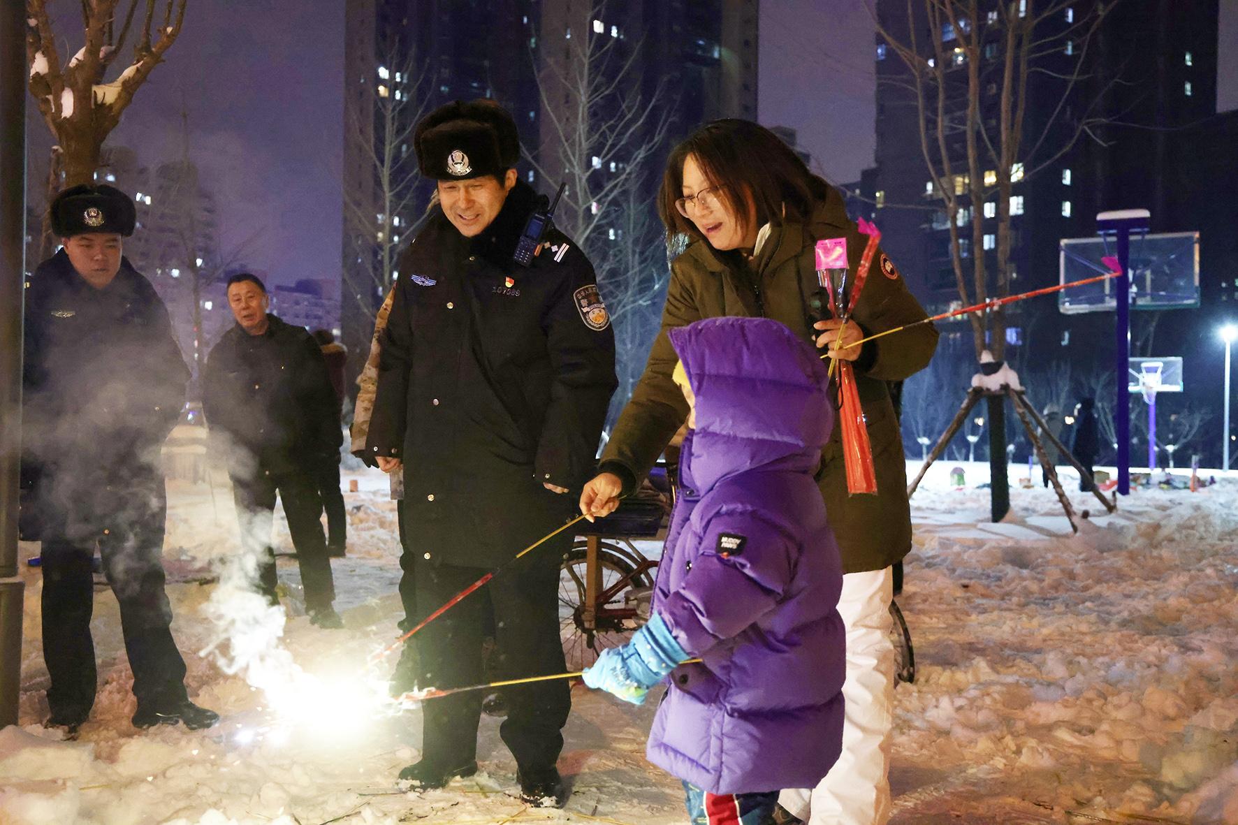 1月29日,遼寧省沈陽市渾南分局五三派出所民警對燃放煙花的群眾進行勸導。