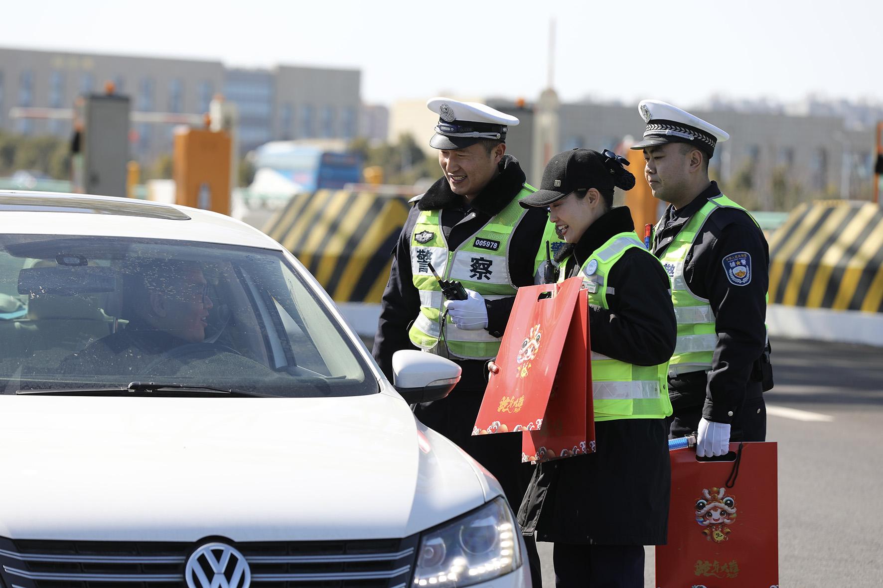 1月28日除夕,安徽省合肥市方興高速道口,交警高速一大隊民警堅守崗位,提醒駕乘人員行車注意安全,為春運保駕護航。