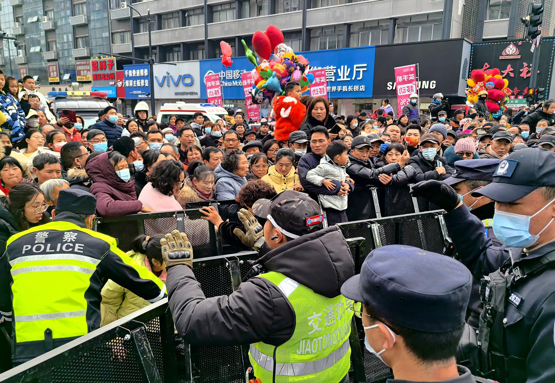 2月2日,江蘇省南通市公安局民輔警在新春民俗巡游活動現(xiàn)場執(zhí)勤。