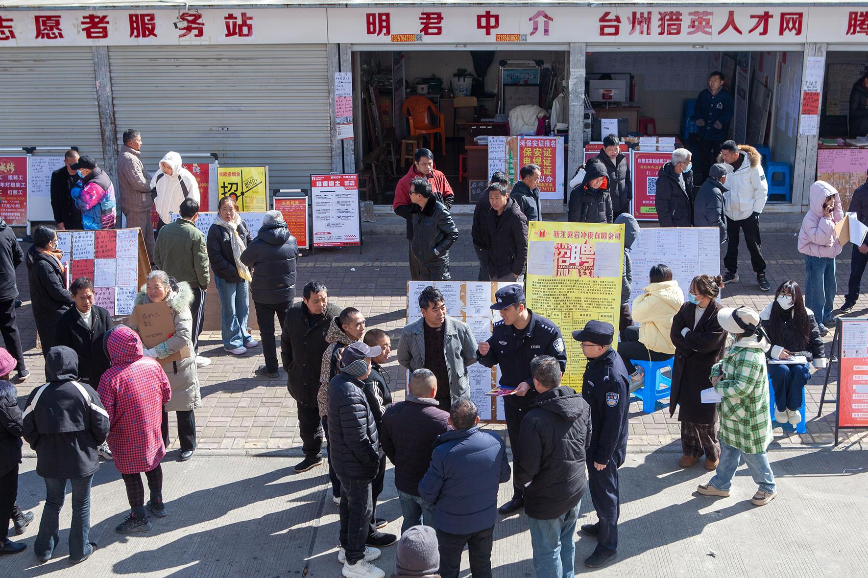 2月8日上午,浙江省臺(tái)州市黃巖區(qū)在人力資源市場舉辦首場新春招聘會(huì)。臺(tái)州市公安局黃巖分局城北派出所民警在現(xiàn)場開展以反詐、禁毒為主的安全防范宣傳,提高務(wù)工人員的安全防范意識(shí)。