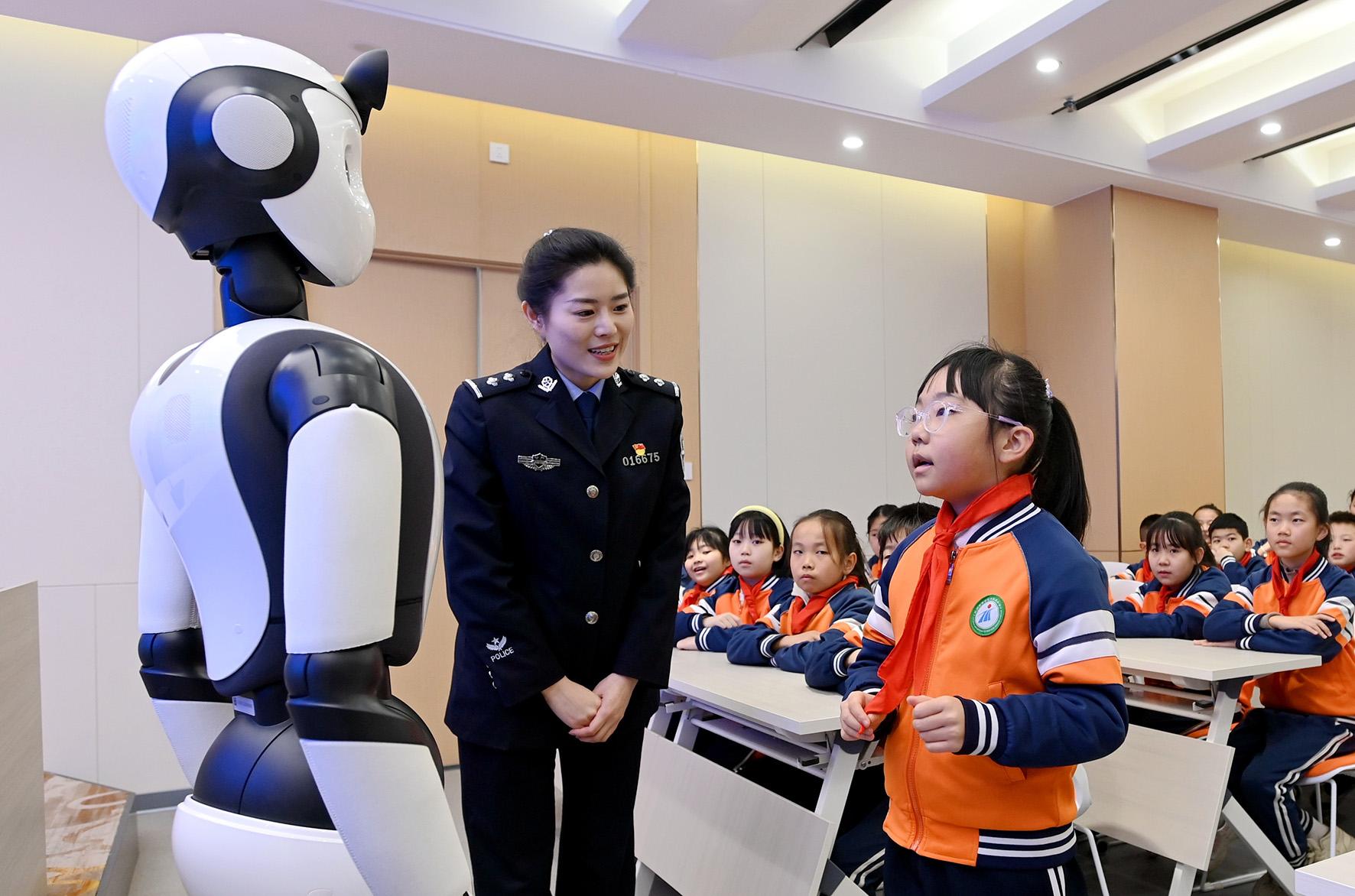 2月25日,甘肅省蘭州市公安局安寧分局“AI警察”——安小寧智能交互式機(jī)器人警官走進(jìn)水掛莊小學(xué)“開學(xué)第一課”大講堂,以童趣化智能交互式體驗(yàn)方式為師生講解校園安全、自我保護(hù)、反詐禁毒等知識。