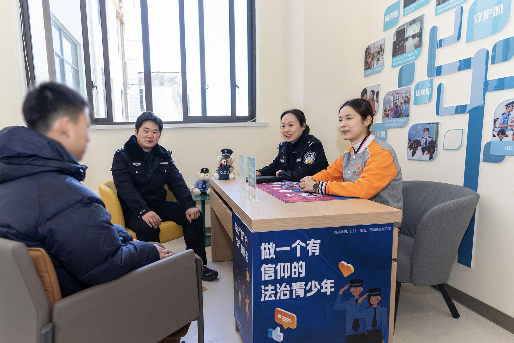 圖為3月9日,民警聯(lián)合青少年社工在社區(qū)少年服務(wù)隊工作室為未成年人提供心理輔導(dǎo)。