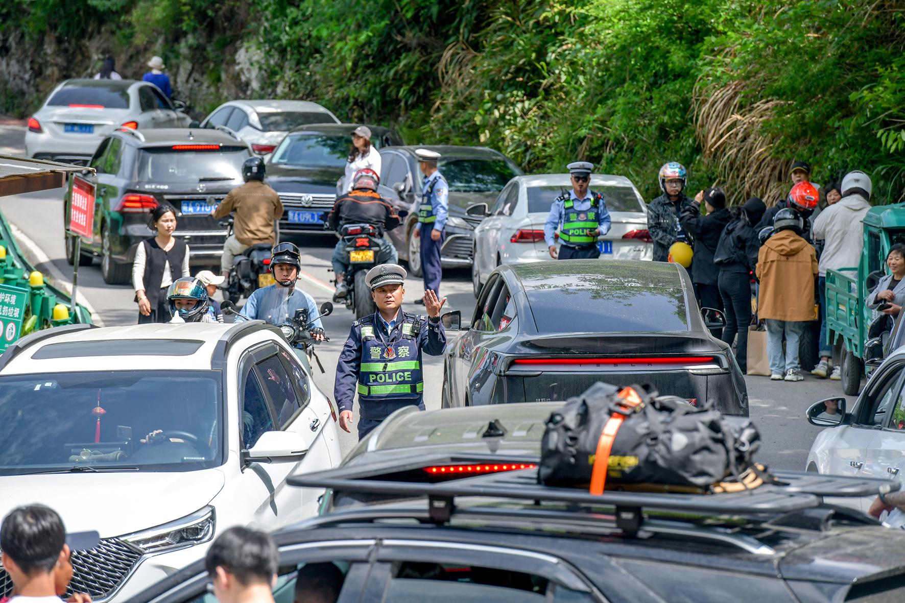 5月1日,安徽涇縣“皖南川藏線”迎來(lái)客流高峰。涇縣公安局全警動(dòng)員,采取“機(jī)動(dòng)+定點(diǎn)”的工作方式,全力保障道路通暢,為游客打造安全有序的出行環(huán)境。