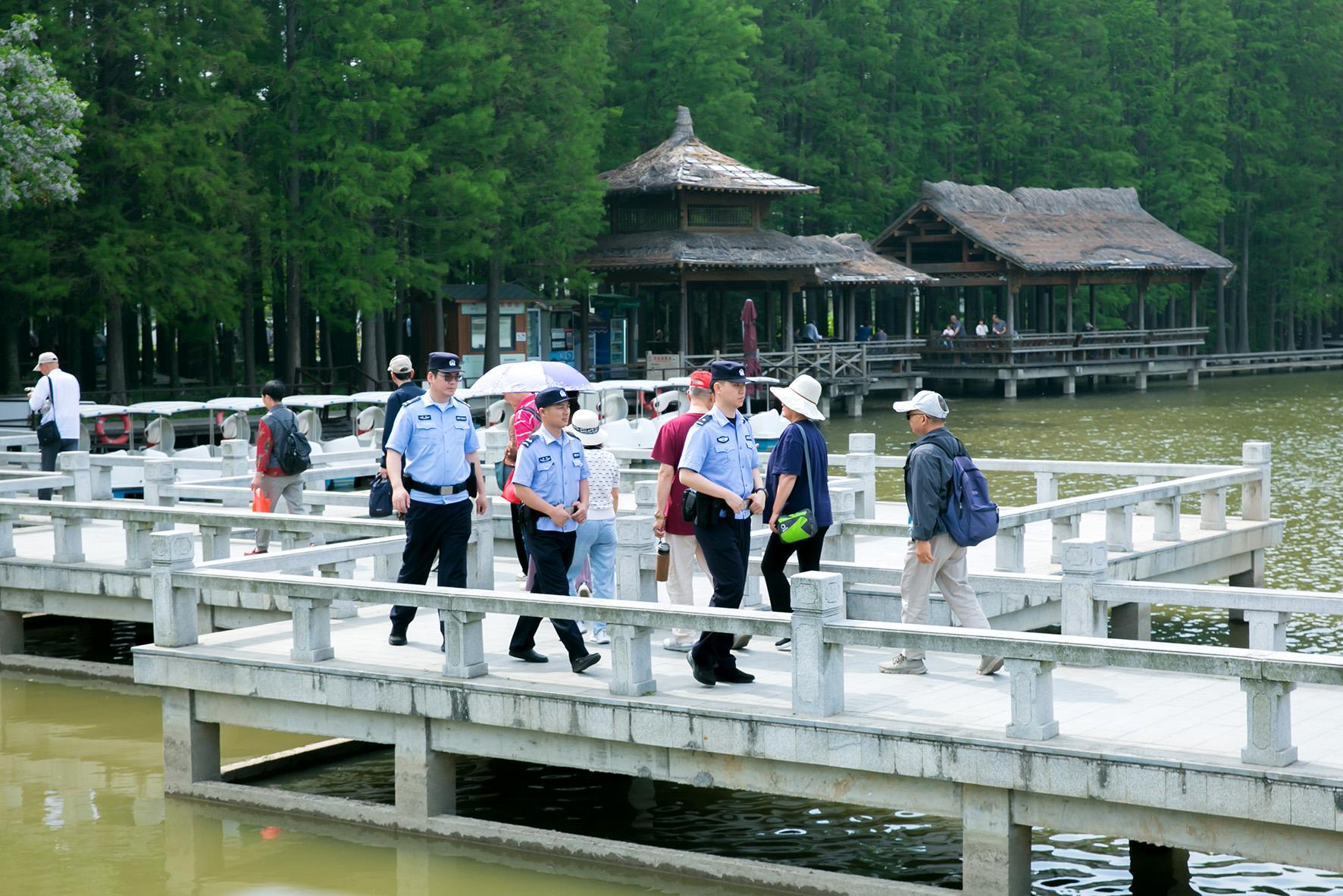 5月2日,四川省綿陽(yáng)市游仙區(qū)越王樓景區(qū)游客絡(luò)繹不絕,綿陽(yáng)市公安局組織警力加強(qiáng)執(zhí)勤巡邏和治安維護(hù),守護(hù)游客平安。