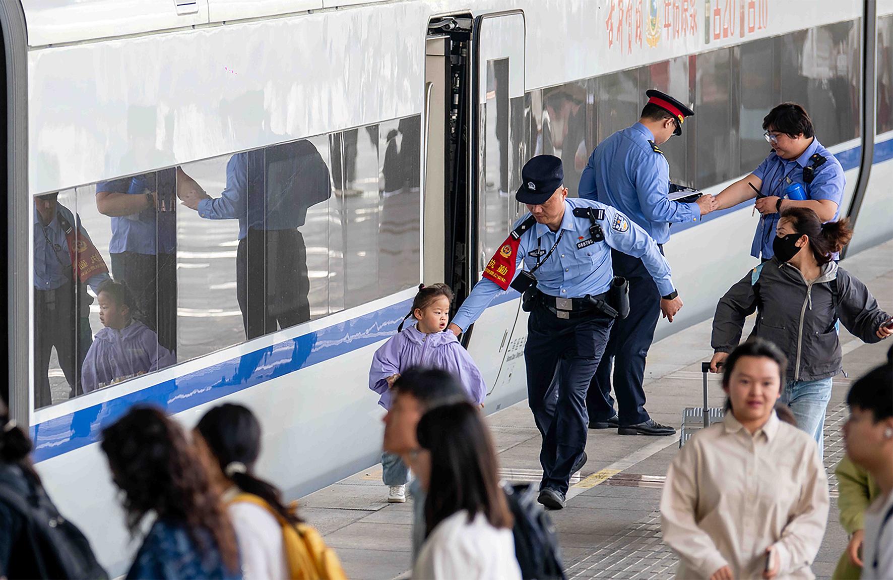 5月1日,成都鐵路公安局貴陽(yáng)公安處銅仁南車站派出所及時(shí)調(diào)整警力,堅(jiān)守崗位,服務(wù)旅客。