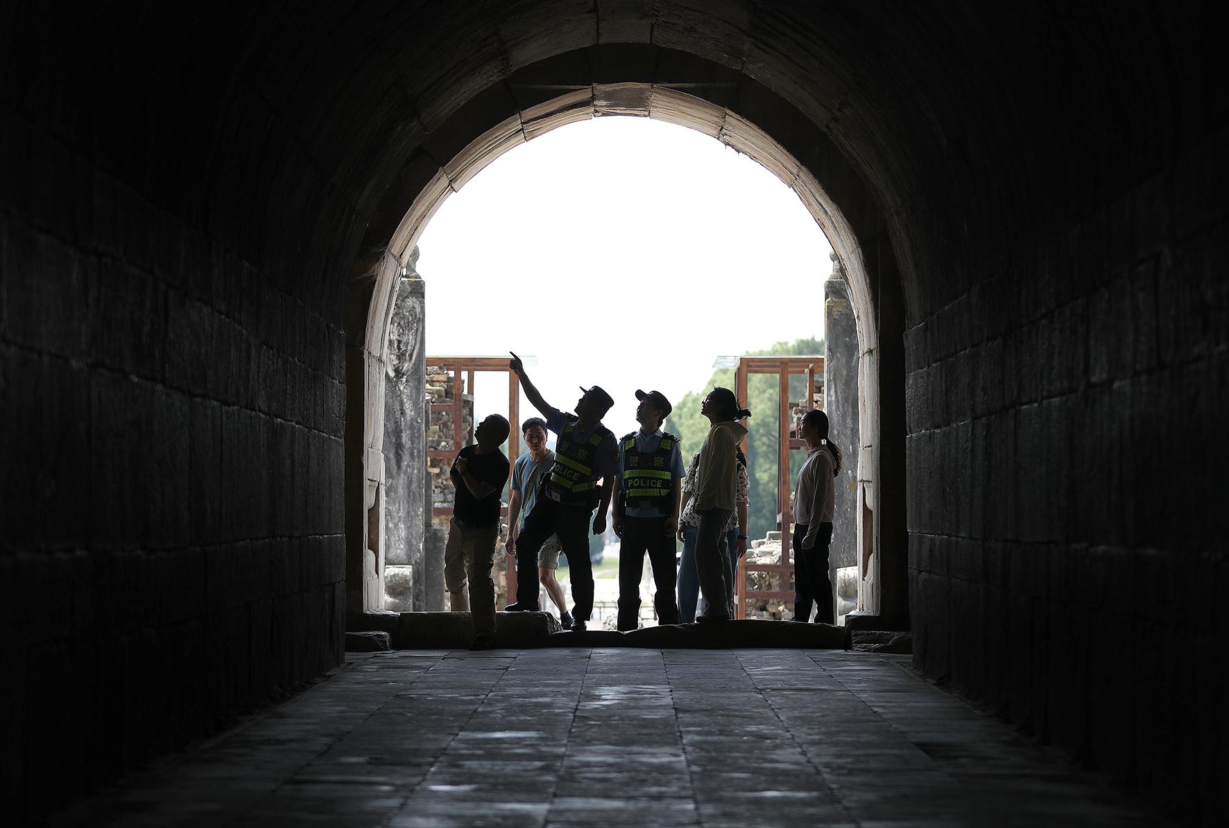 5月13日,在世界文化遺產(chǎn)湖北省鐘祥市明顯陵,鐘祥市公安局皇莊水陸派出所民警在巡查過程中化身“普法導游”,一邊為游客介紹明代皇家陵寢的獨特魅力,一邊積極宣傳新修訂的《中華人民共和國文物保護法》知識。