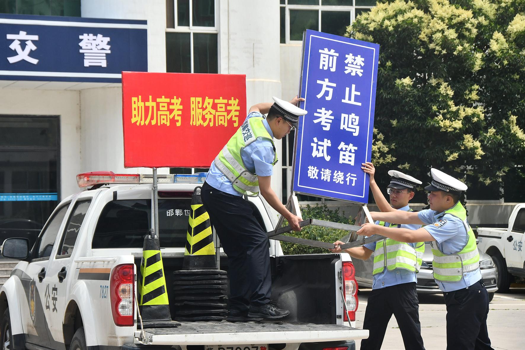 6月5日,河北省邯鄲市公安局交巡警支隊永年區(qū)大隊民警將高考相關(guān)交通標(biāo)志牌裝車運往考場周邊路段。