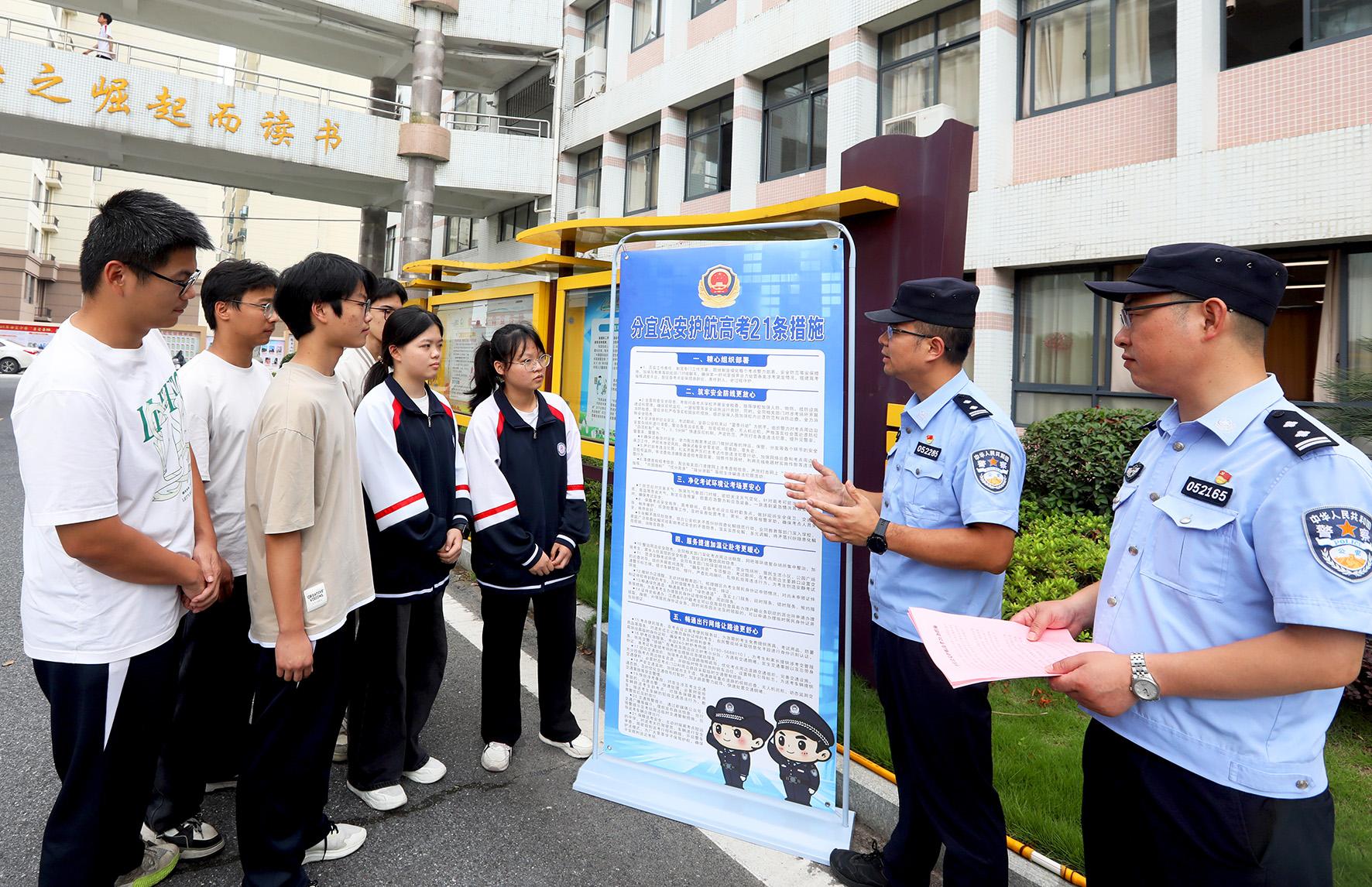 6月4日,江西省分宜縣公安局民警走進(jìn)分宜中學(xué)向考生宣傳公安機(jī)關(guān)高考期間護(hù)考服務(wù)舉措。