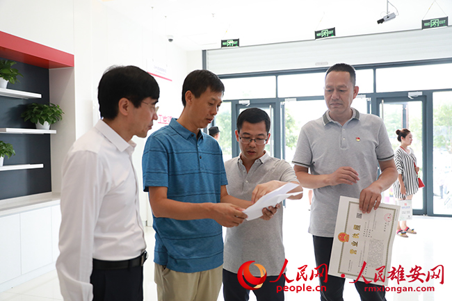 圖為中國(guó)人民銀行保定市中心支行副行長(zhǎng)陳立房在工商銀行雄安分行督導(dǎo)業(yè)務(wù)辦理。雄安媒體中心竇薇/攝