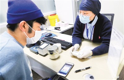 1月7日,上海市部分社區(qū)預(yù)防接種門診開始為因私出國工作、學(xué)習(xí)人員提供新冠疫苗預(yù)約緊急接種服務(wù)。自2021年1月7日0時(shí)起,上海市民可通過“健康云”APP在線24小時(shí)登記和預(yù)約。圖為上海市徐匯區(qū)康健街道社區(qū)衛(wèi)生服務(wù)中心醫(yī)務(wù)人員向接種者展示疫苗品名和有效期等信息。