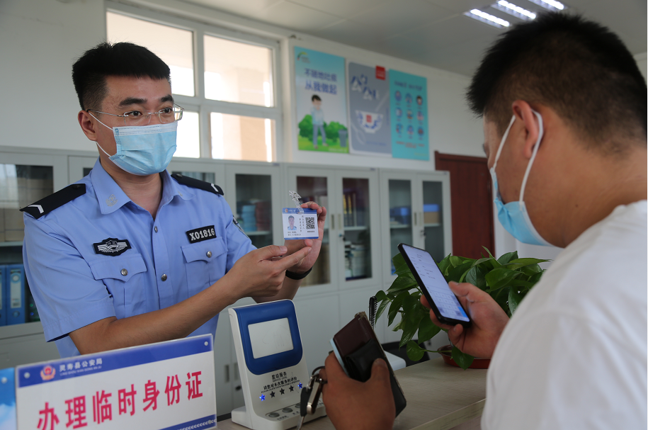 近日,河北省靈壽縣公安局舉行“群眾是家人、警情是家事”掃碼評(píng)警啟動(dòng)儀式,推行“二維碼評(píng)警”智能警務(wù)評(píng)議系統(tǒng)。今后,靈壽公安窗口服務(wù)人員、出警民警將佩戴二維碼上崗、辦案,當(dāng)事群眾可以通過(guò)掃碼對(duì)公安工作進(jìn)行評(píng)價(jià)?!皰叽a評(píng)警”既能快速回應(yīng)群眾合理訴求,又能為窗口服務(wù)和公安隊(duì)伍建設(shè)提供有效監(jiān)督和數(shù)據(jù)保障。圖為靈壽公安窗口服務(wù)人員向辦事群眾展示二維碼并接受評(píng)價(jià)。