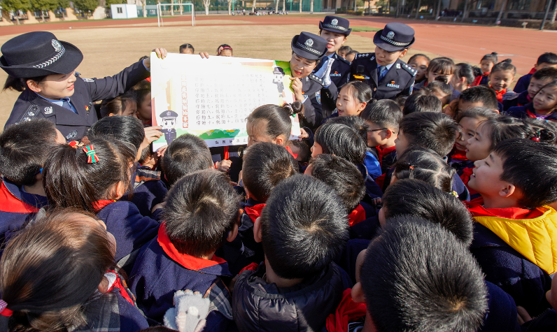 12月21日,南京鐵路公安處南京站派出所聯(lián)合南京鐵路公安處特警支隊(duì)及南京東站派出所走進(jìn)南京一中江北新區(qū)分校,開展“安全宣傳進(jìn)校園 寓教于樂話平安”活動(dòng),通過講故事、看演練、寫書法、學(xué)折紙等方式寓教于樂,向?qū)W生宣傳反恐防暴知識(shí)及鐵路安全防范知識(shí),提高學(xué)生安全意識(shí)。圖為民警帶領(lǐng)學(xué)生共同學(xué)習(xí)鐵路及校園安全知識(shí)。