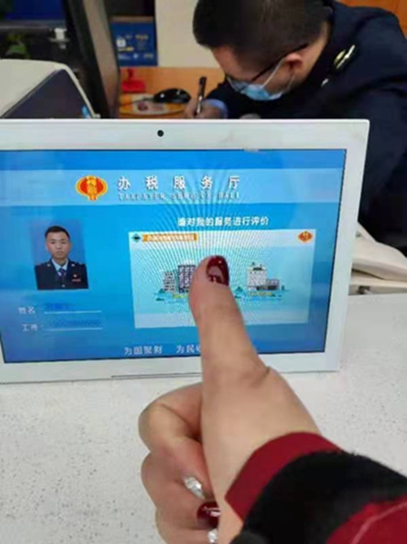 “大家都要向鵬宇學(xué)習(xí),辦理業(yè)務(wù)時(shí)要充滿耐心、細(xì)心,為每一位前來(lái)辦事的人員提供優(yōu)質(zhì)服務(wù)。”上午10:30,辦稅服務(wù)廳副主任周霞在微信工作群里發(fā)了一張來(lái)自繳費(fèi)人拍的照片--一個(gè)大拇指與程鵬宇評(píng)價(jià)窗口的合照。