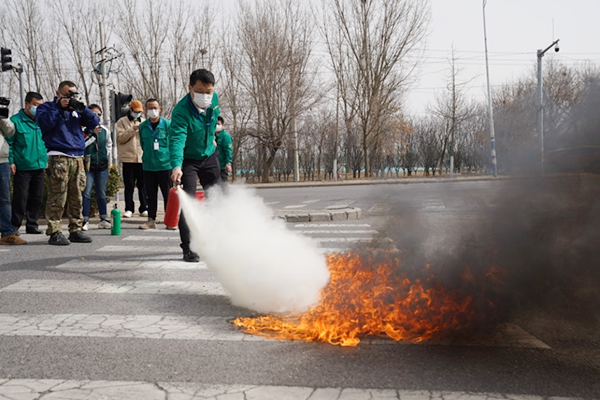 隨后,工作人員演示了假冒偽劣消防產(chǎn)品和合格消防產(chǎn)品滅汽油火災(zāi)的實(shí)驗(yàn)。只見假冒偽劣消防產(chǎn)品并未將火撲滅,反而造成火勢的擴(kuò)大。