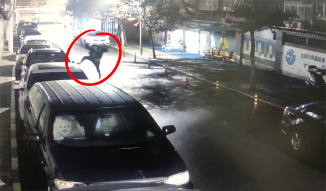 嫌疑人酒后飛踹路邊車輛。濟(jì)南警方供圖