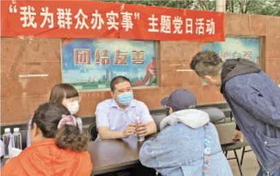 圖為裴昱(中)在“我為群眾辦實事”主題黨日活動上為群眾答疑解惑。 受訪者供圖