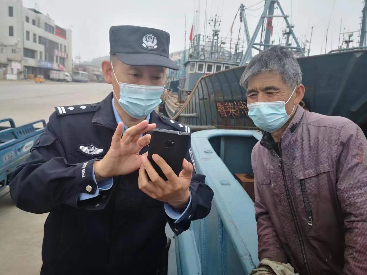 真情的付出不僅讓群眾參與到社會治安中來,還讓警民之間的關(guān)愛成為“雙向奔赴”。2019年在抗擊臺風(fēng)“利奇馬”戰(zhàn)斗中,派出所的出警車車牌被沖走,漁民們冒雨找回并給安裝到車上;2020年船管警務(wù)室辦公場所擴(kuò)建,每天都有漁民自發(fā)幫助清運建筑垃圾,自愿出工出力。